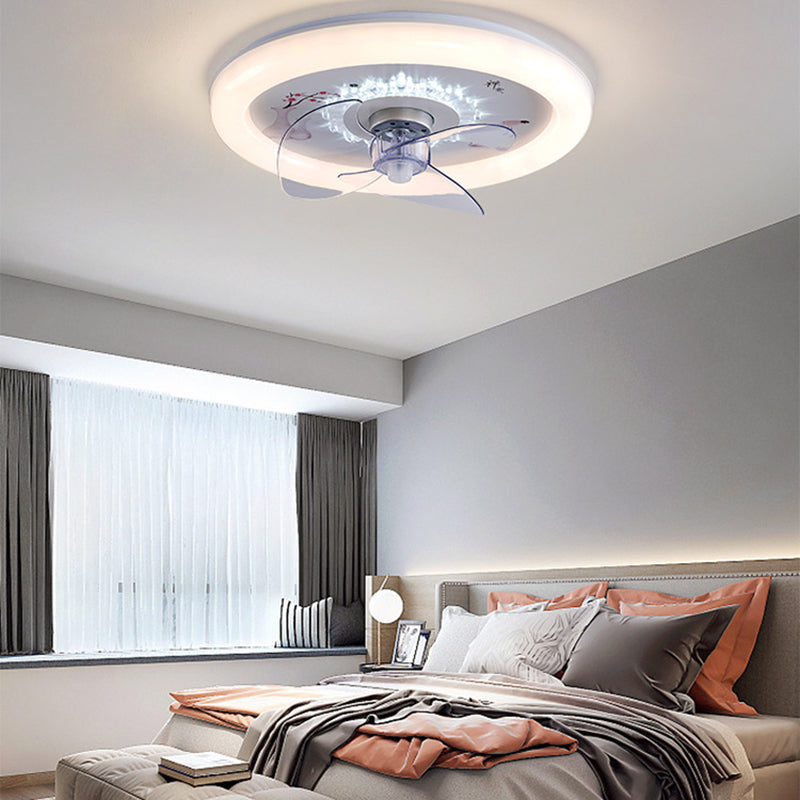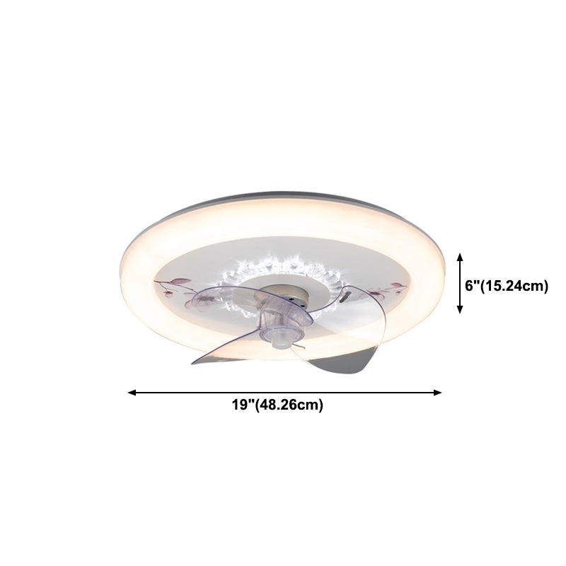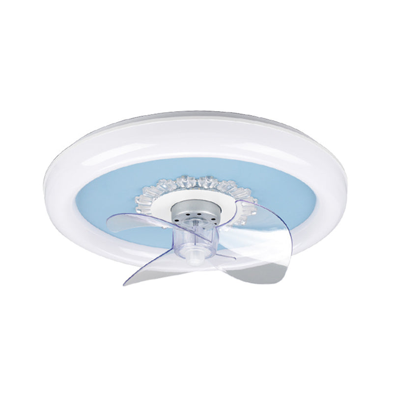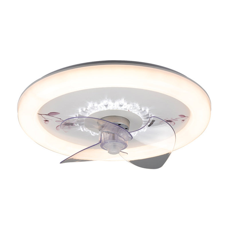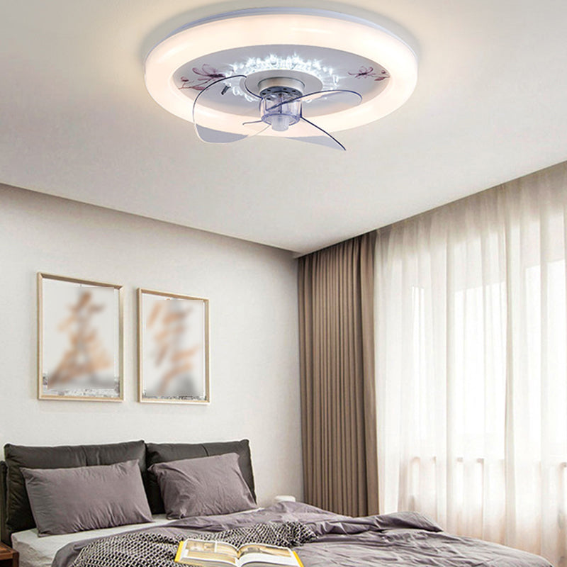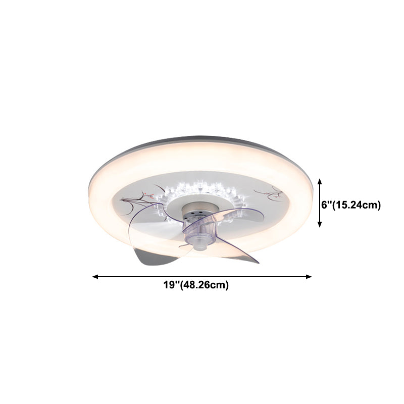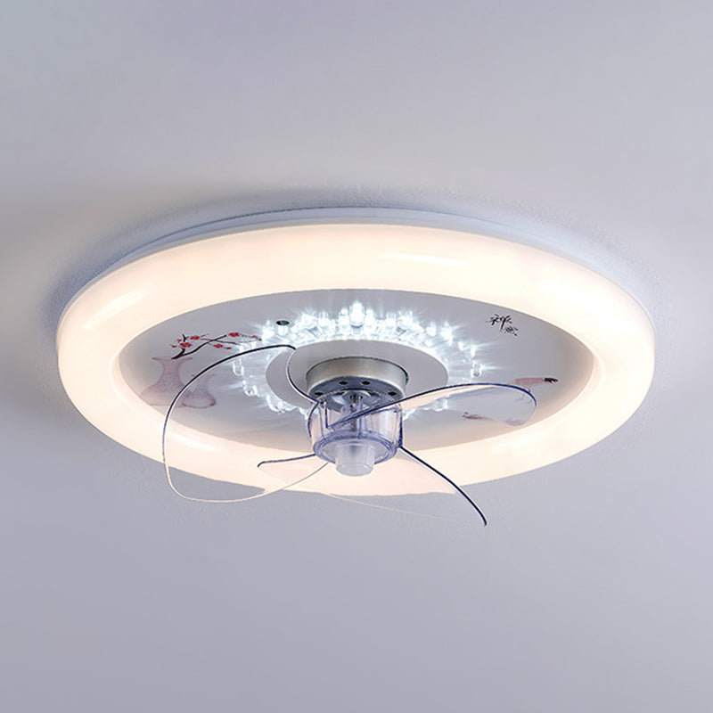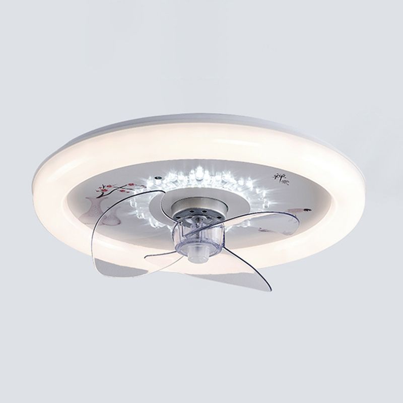 Simple Circular LED Fan Light 3-Blade Bedroom Semi Flush Ceiling Light in White
