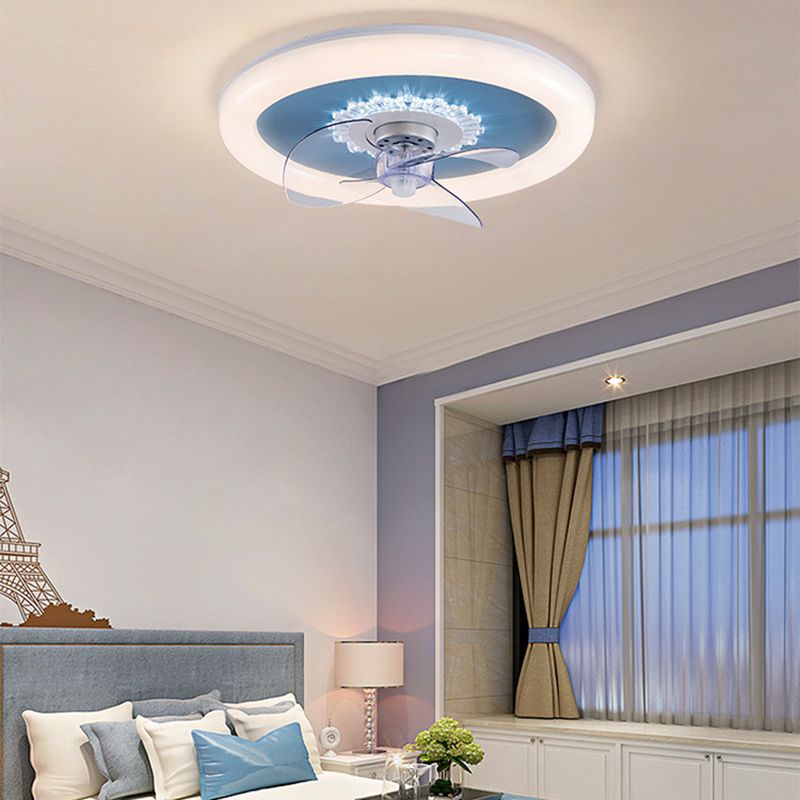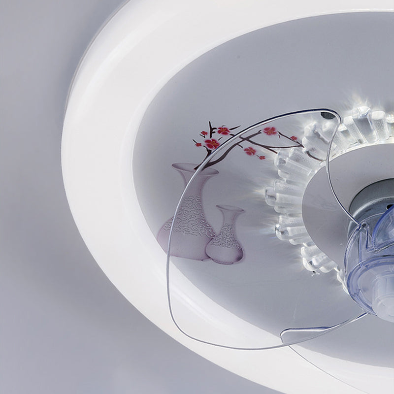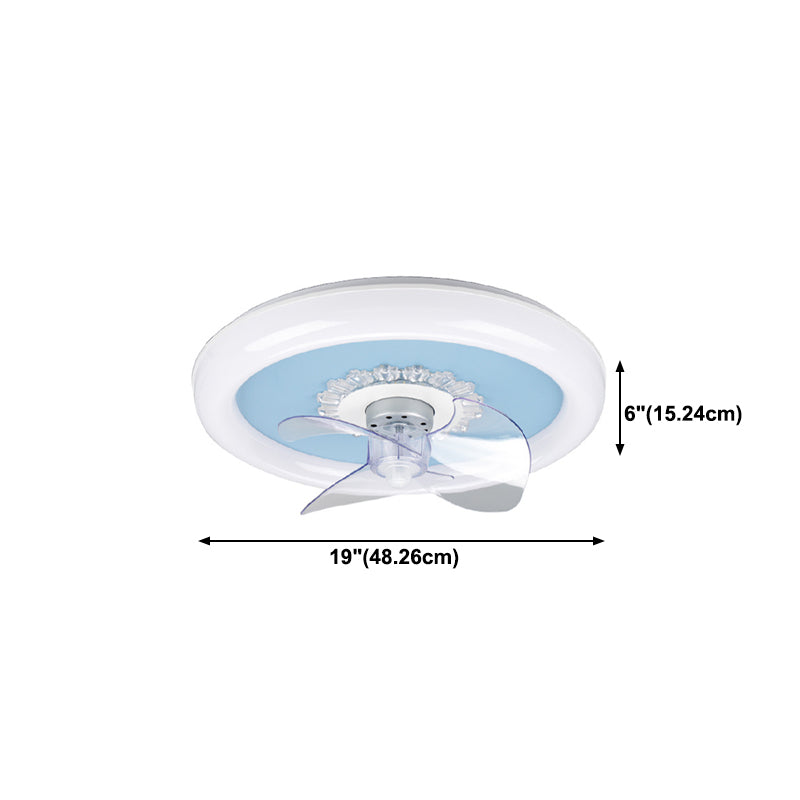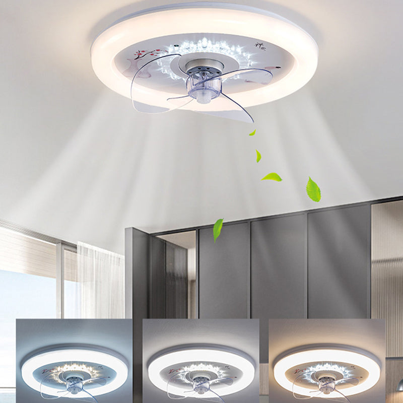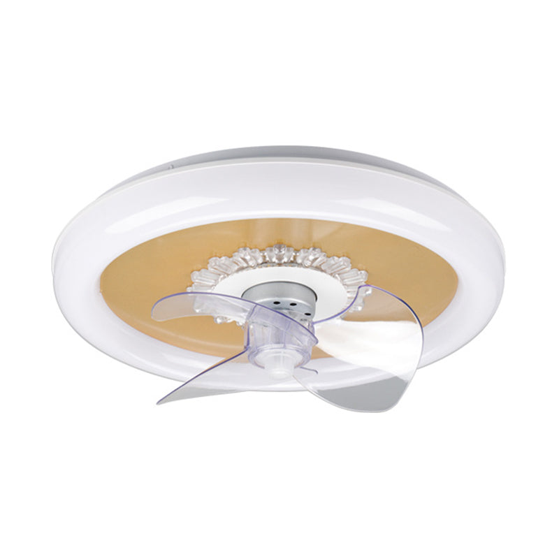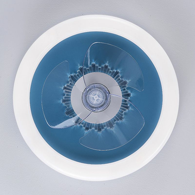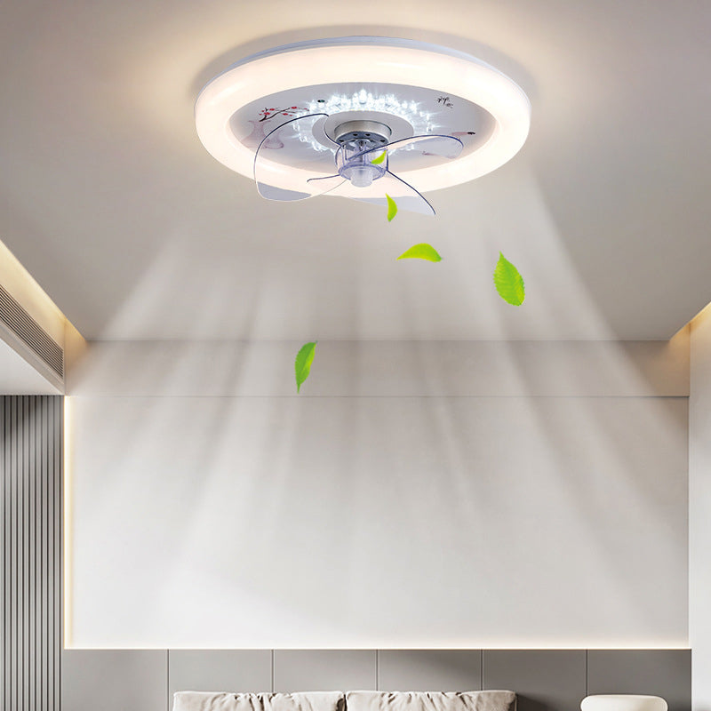 Simple Circular LED Fan Light 3-Blade Bedroom Semi Flush Ceiling Light in White