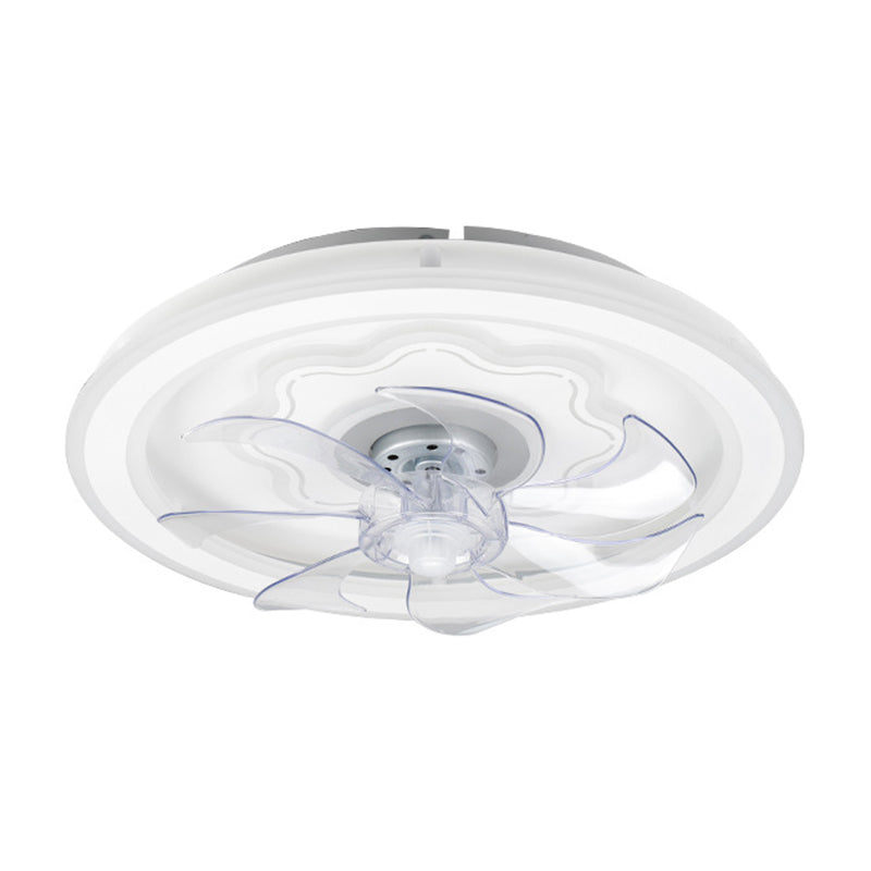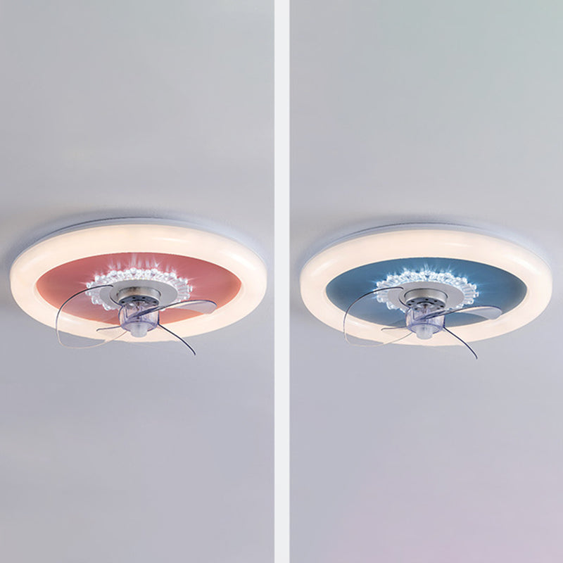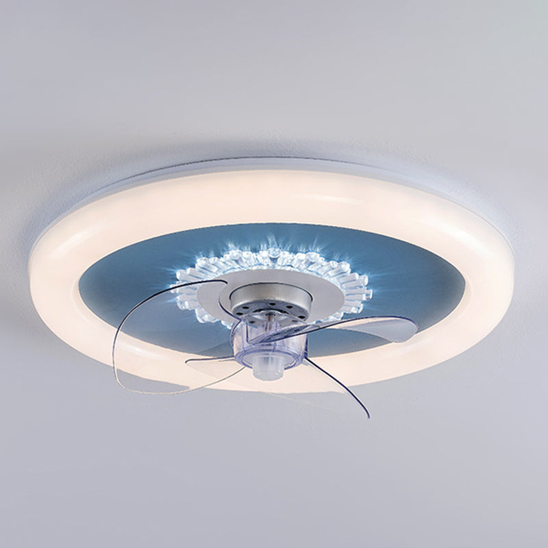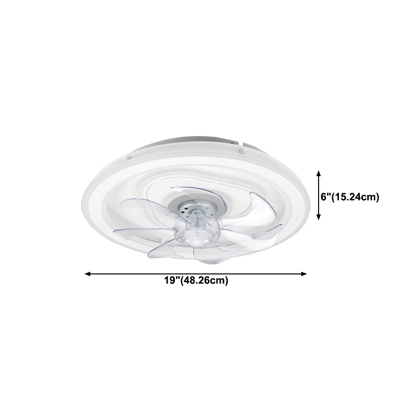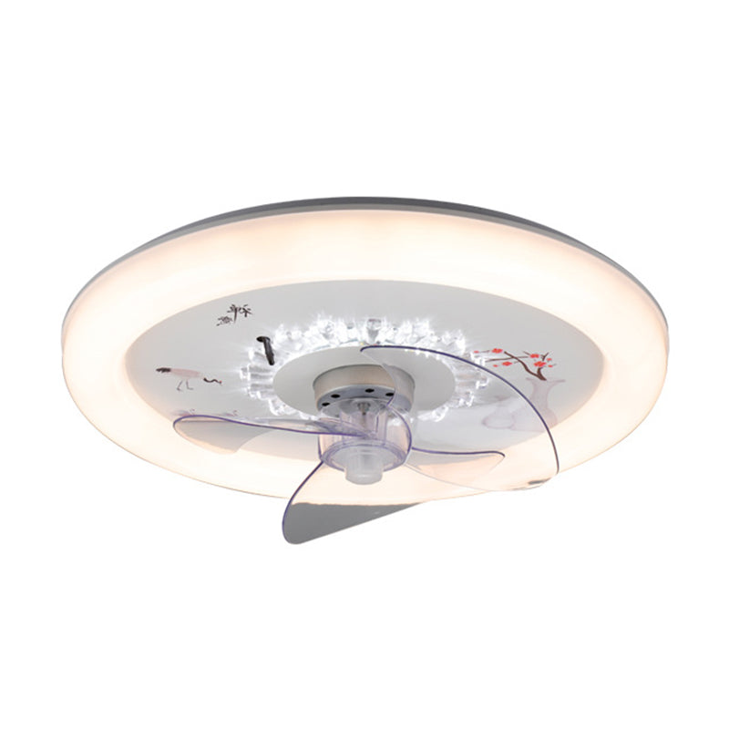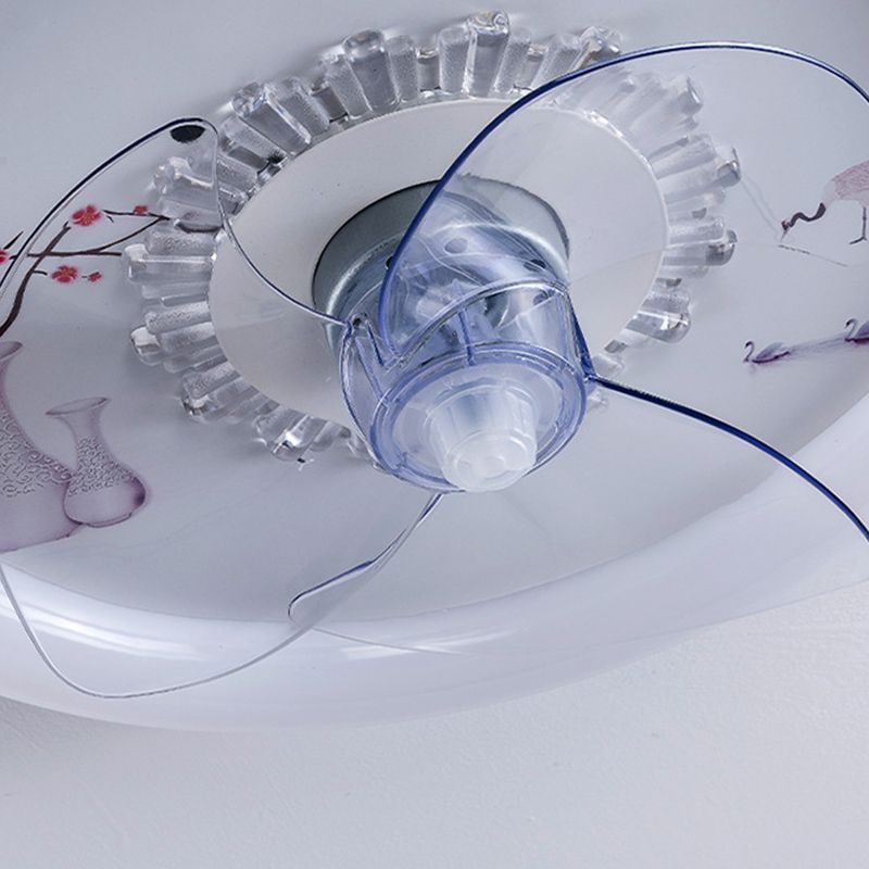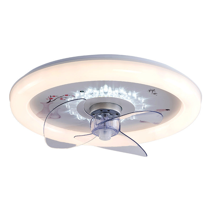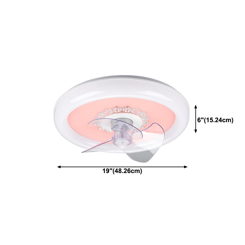 Simple Circular LED Fan Light 3-Blade Bedroom Semi Flush Ceiling Light in White