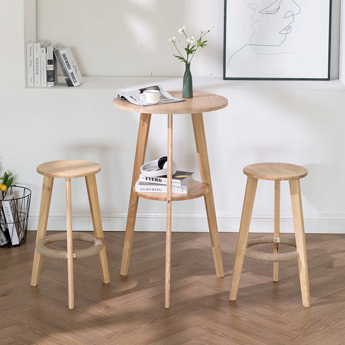 Simple Style Round Bar Table Wood Top Pub Table for Dining Room