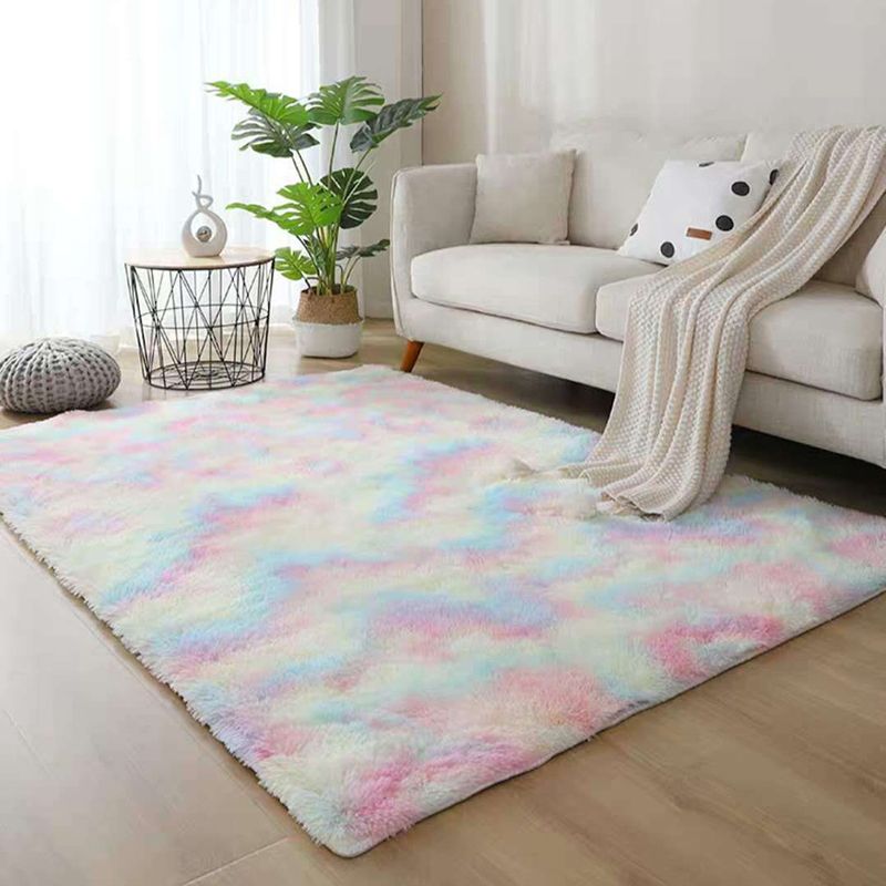 Simplicity Area Carpet Funky Tie Dye Carpet Polyester Shag Rug with Non-Slip Backing