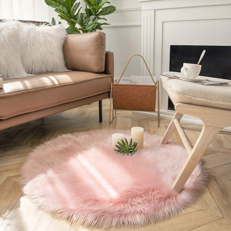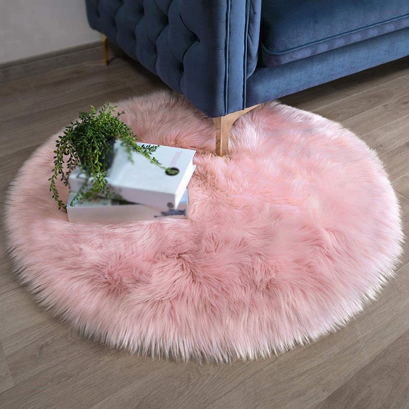 Simplicity Plain Round Rug Calming Shag Polypropylene Rug Friendly Washable Carpet for Living Room