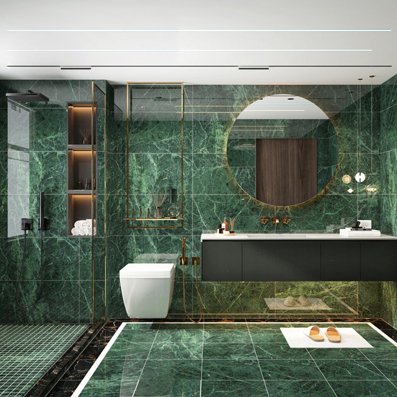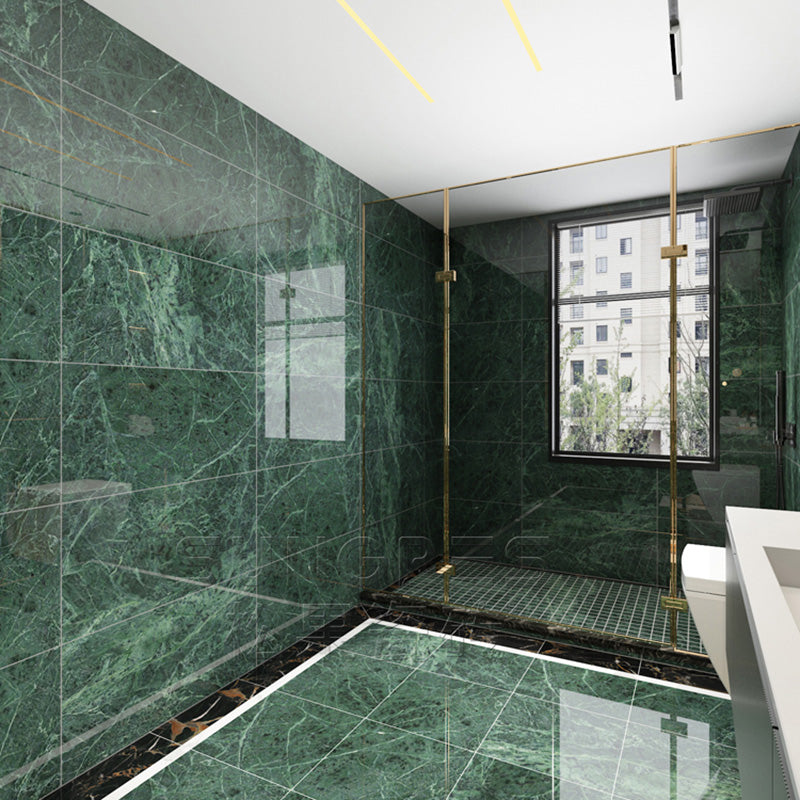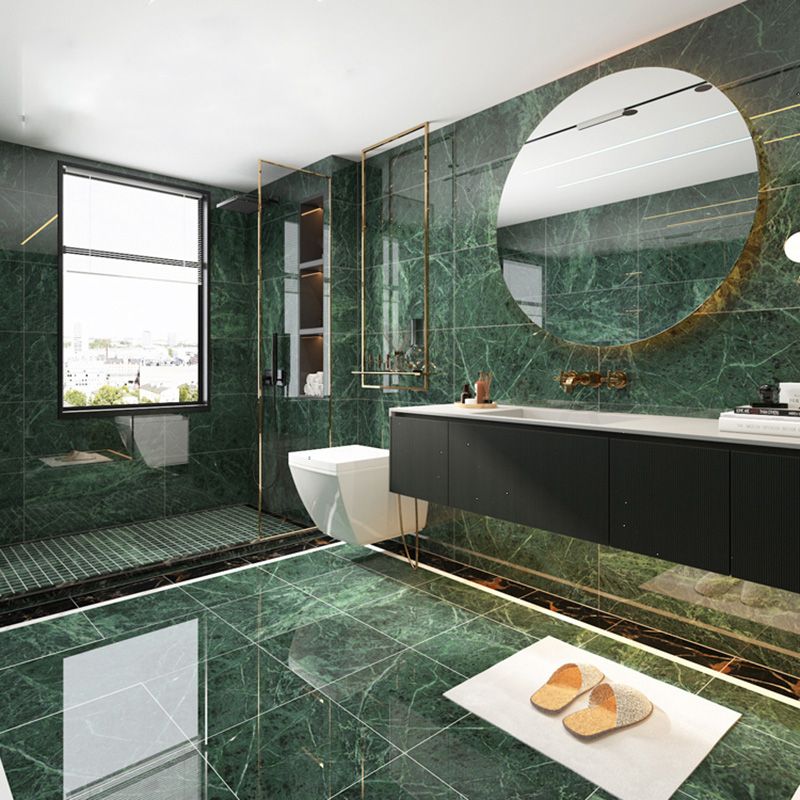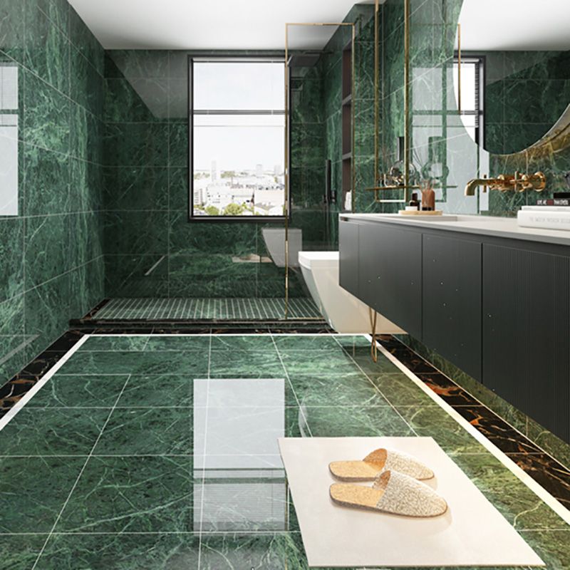 Slip Resistant Floor Tile in Green Straight Edge Polished Marbling Tile