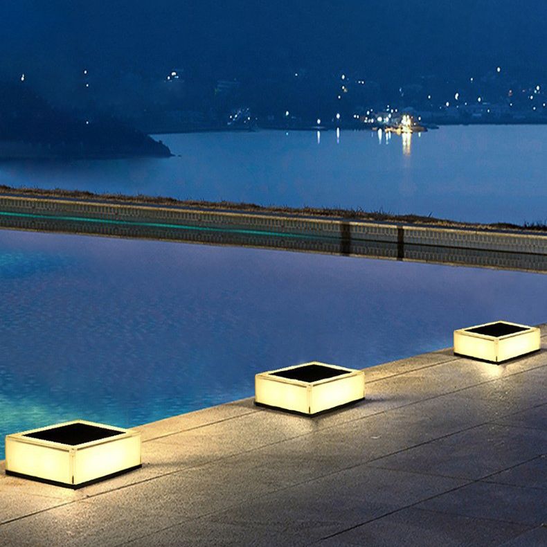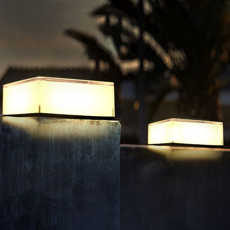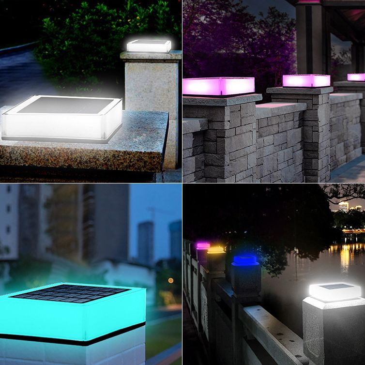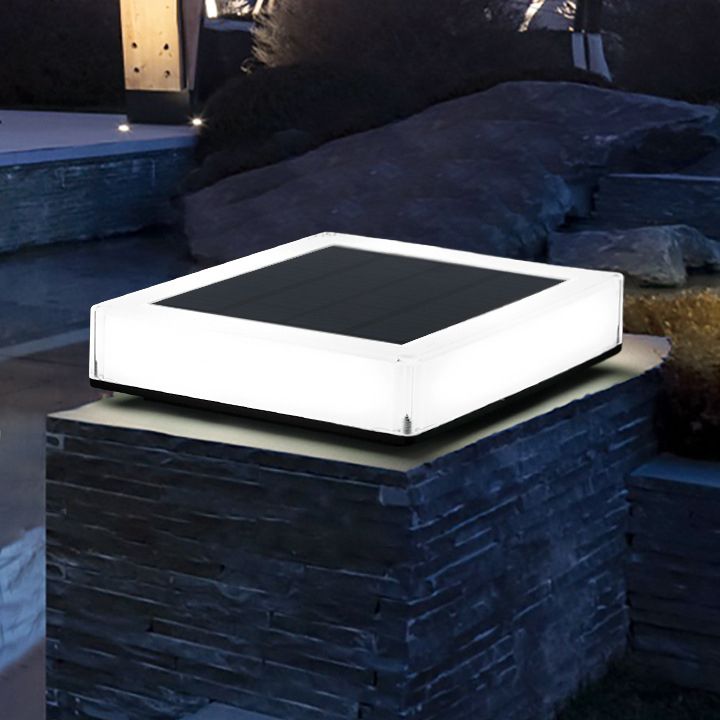 Solar Dimmable Outdoor Lights Square Pillar Lamp with Plastic Shade for Garden