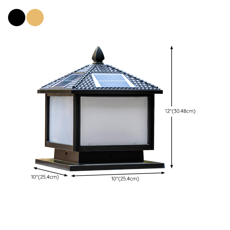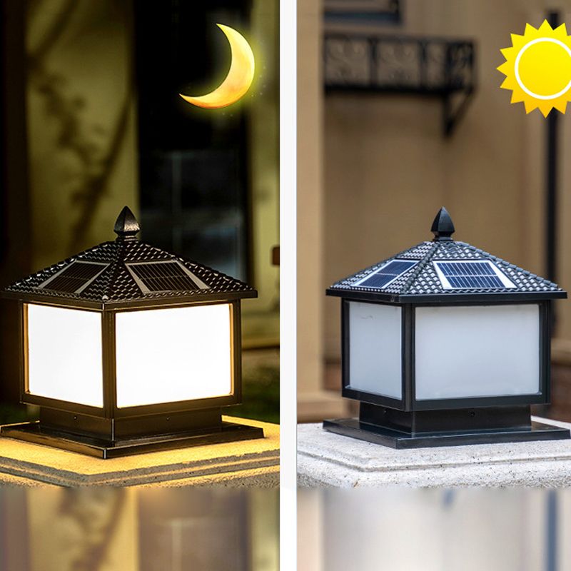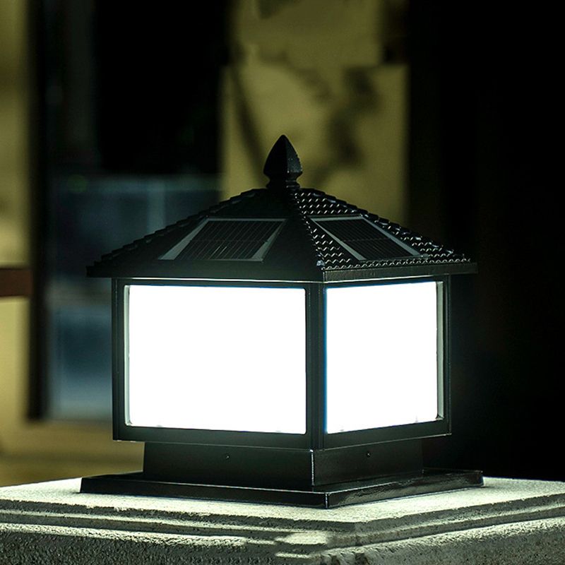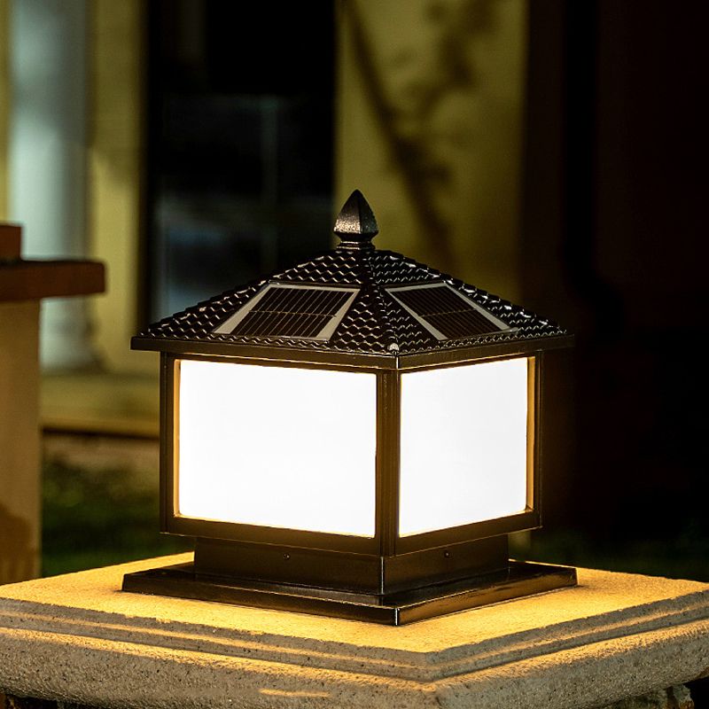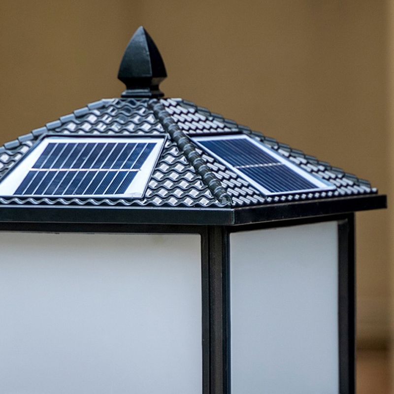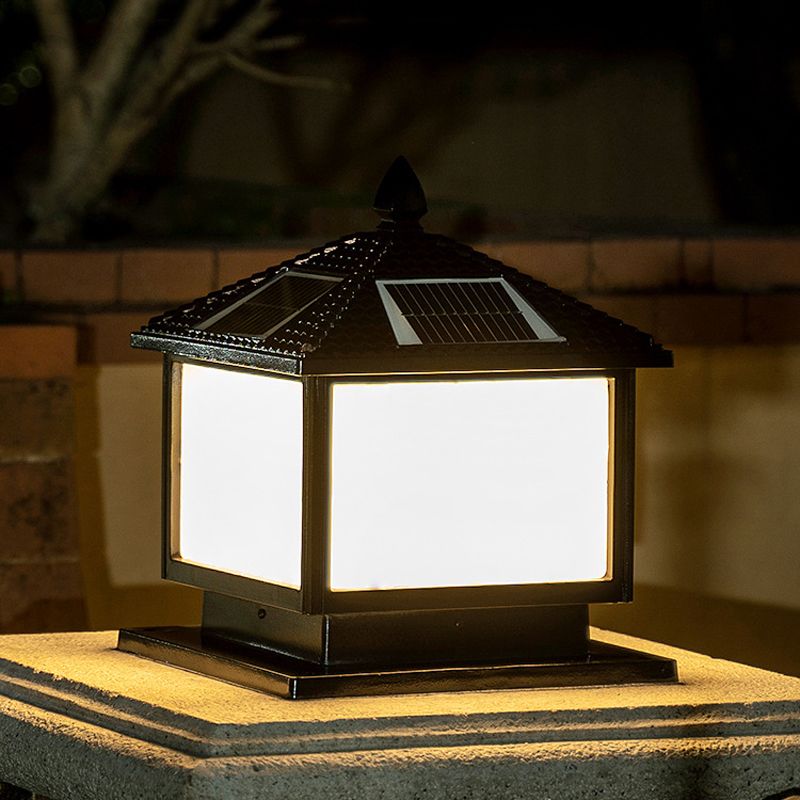 Solar Energy Pillar Lamp Square Outdoor Light with Acrylic Shade for Garden