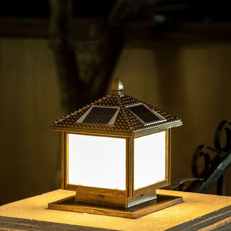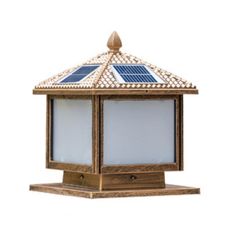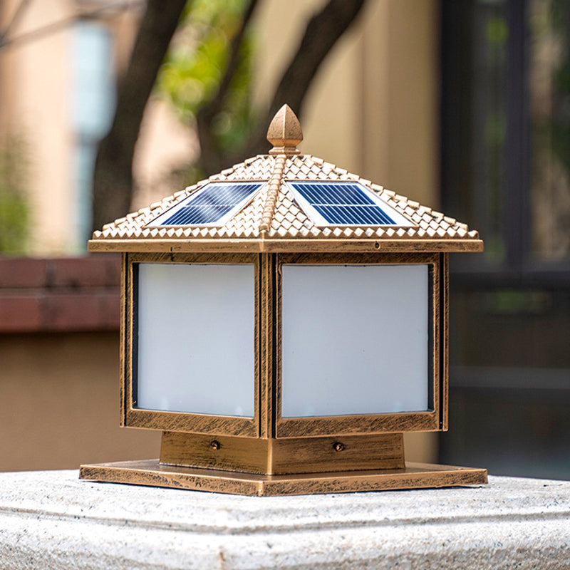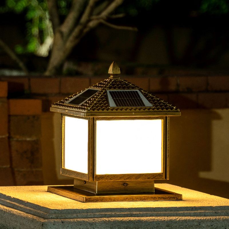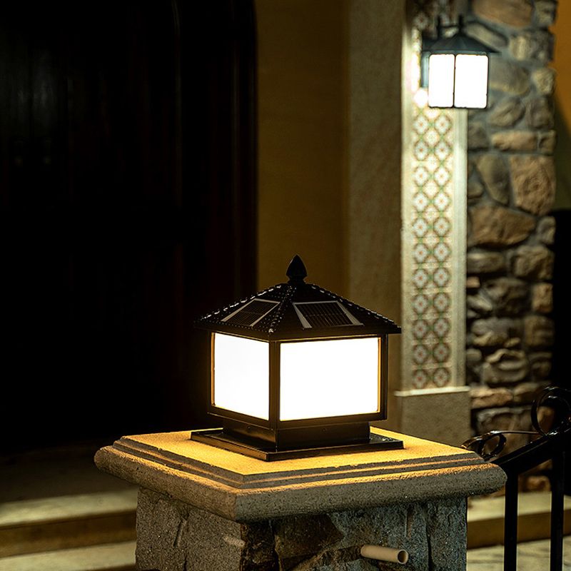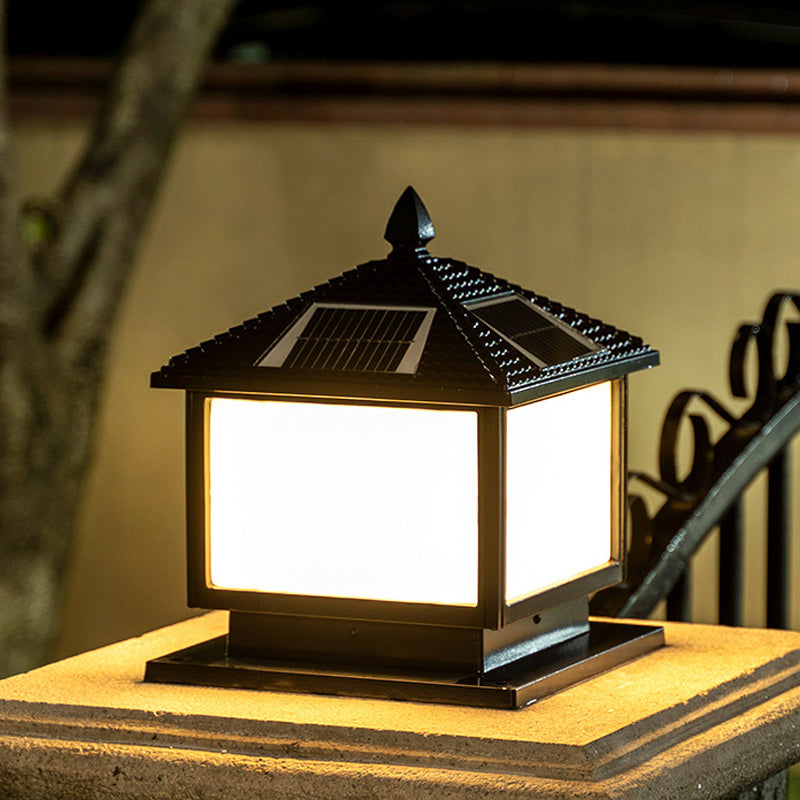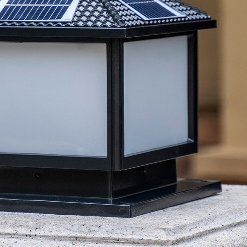 Solar Energy Pillar Lamp Square Outdoor Light with Acrylic Shade for Garden