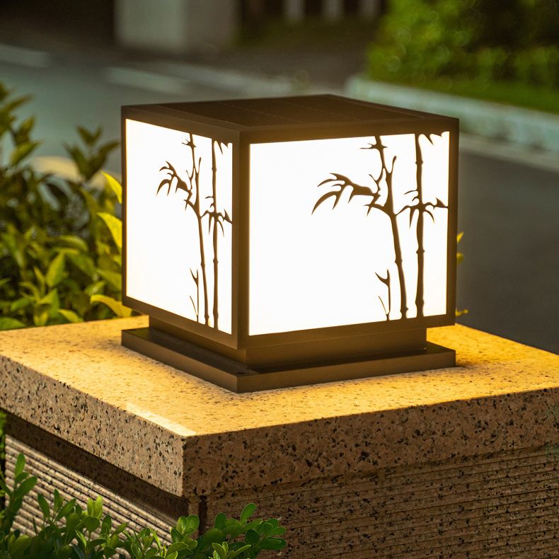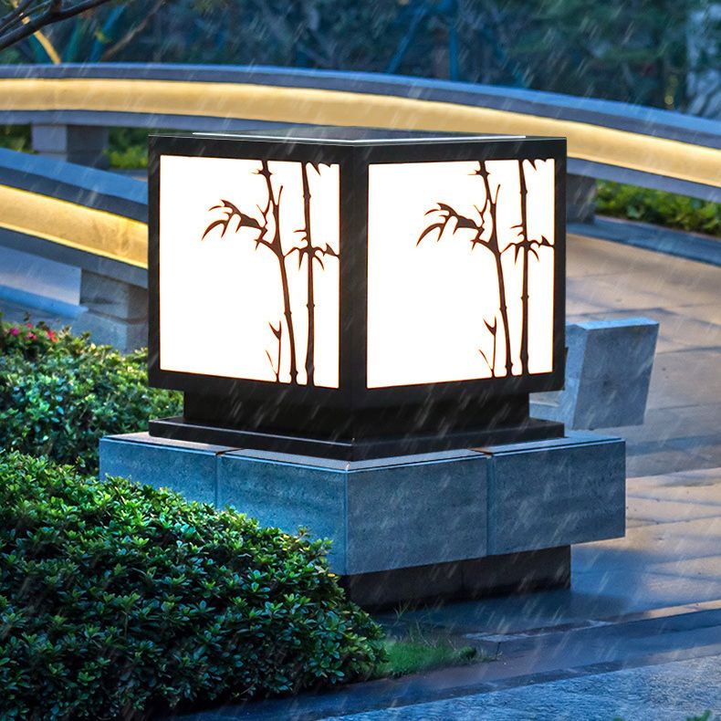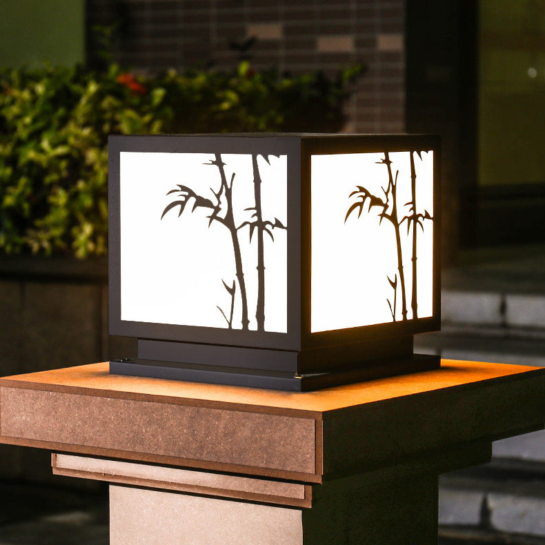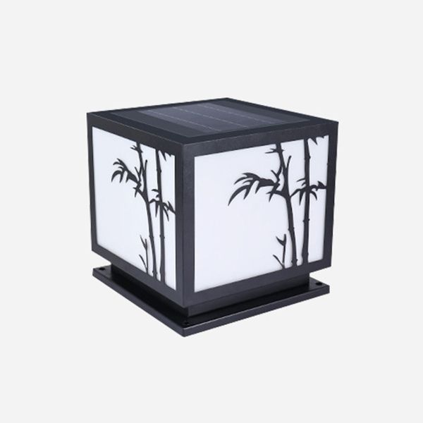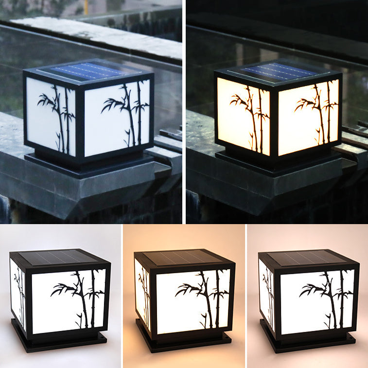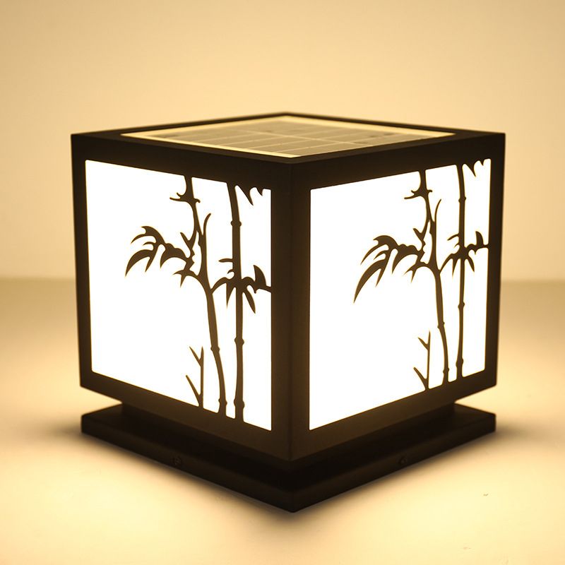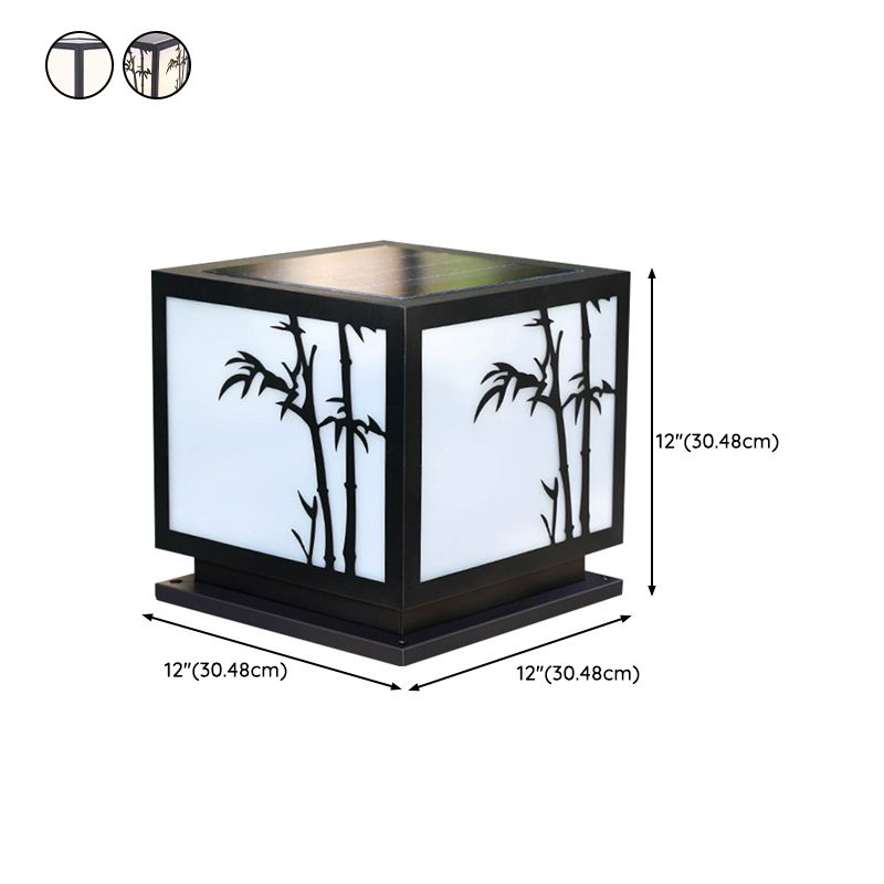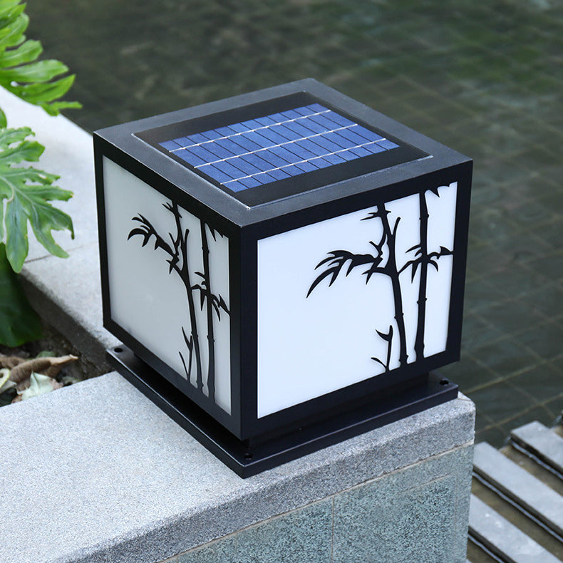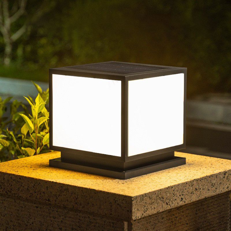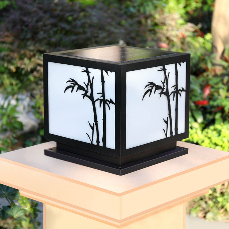 Solar Square Outdoor Lights Black Metal Pillar Lamp with Acrylic Shade for Garden