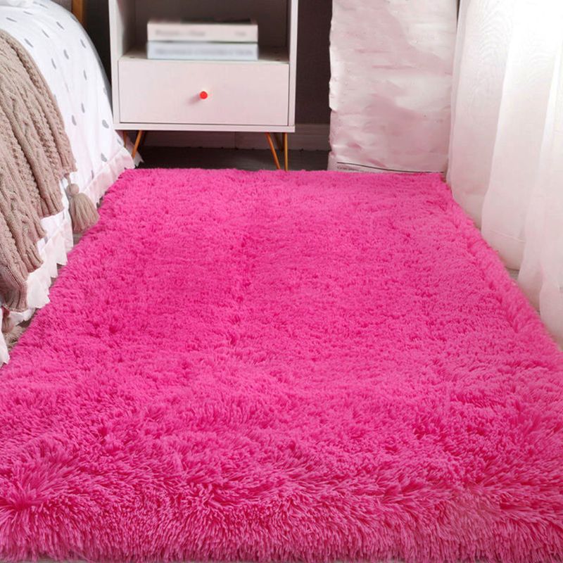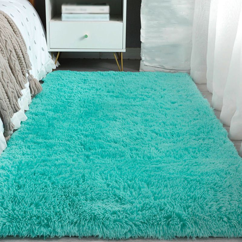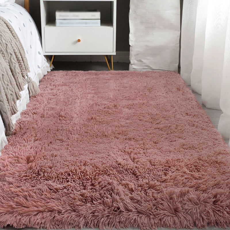 Solid Color Plush Carpet Polyester Casual Rug Washable Rug for Sleeping Room