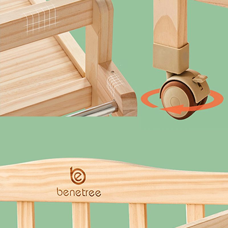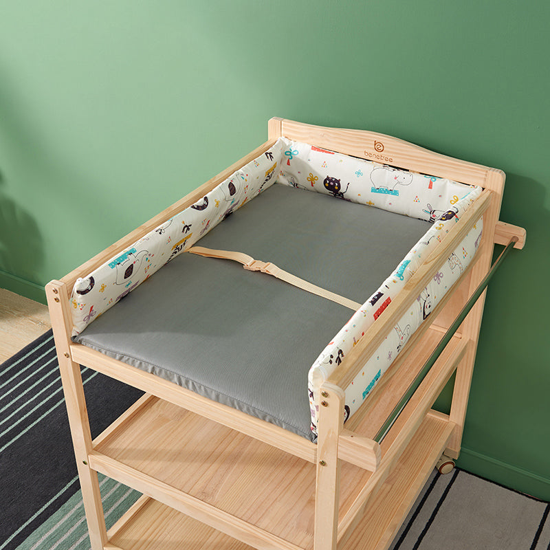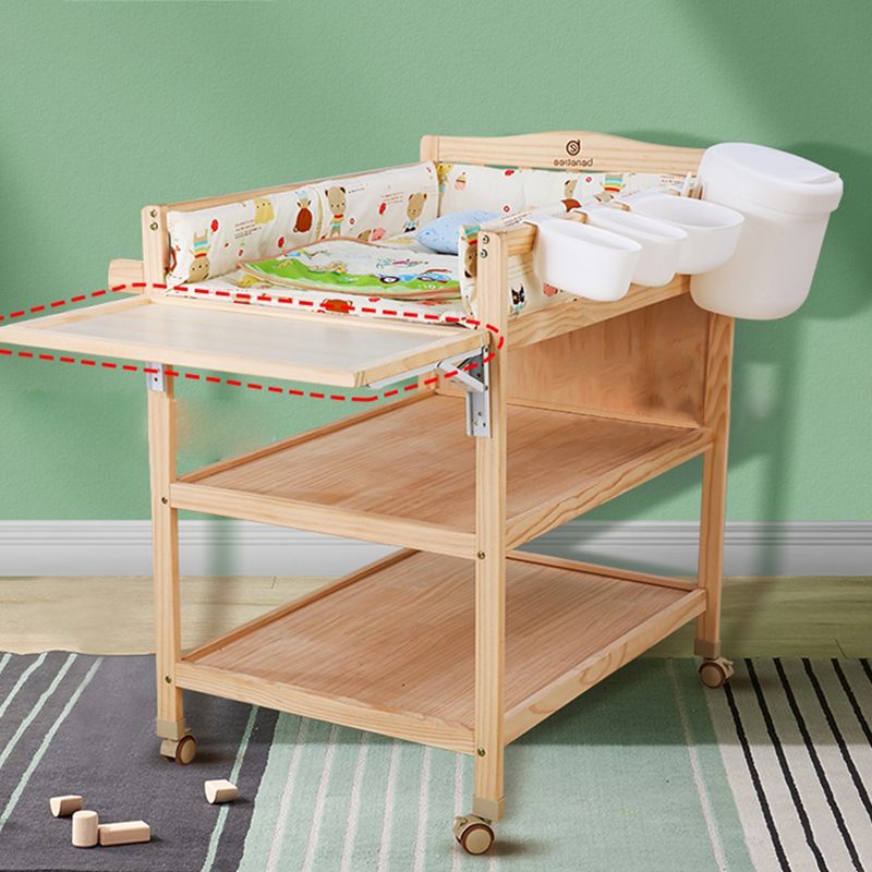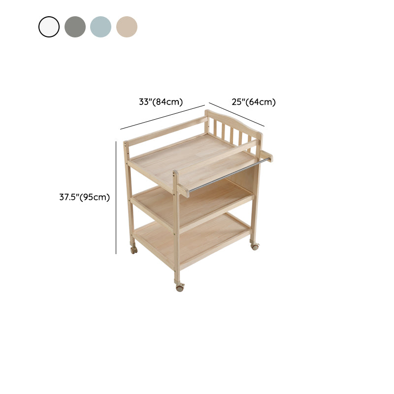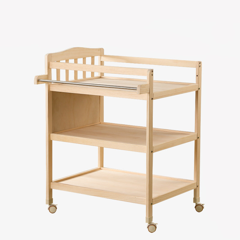 Solid Wood Baby Changing Table Flat Top with 2 Storage Shelves and Wheel