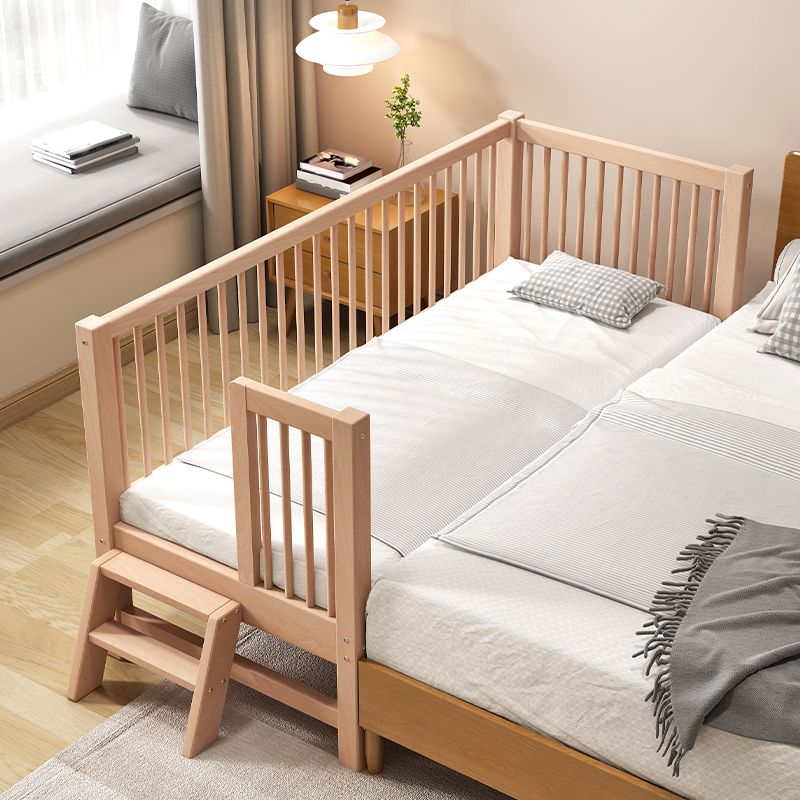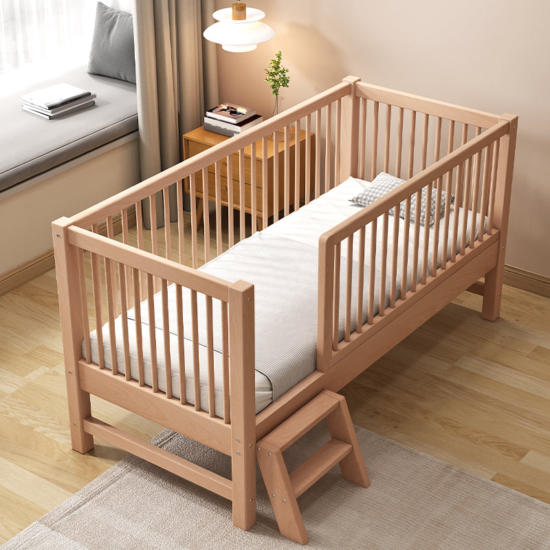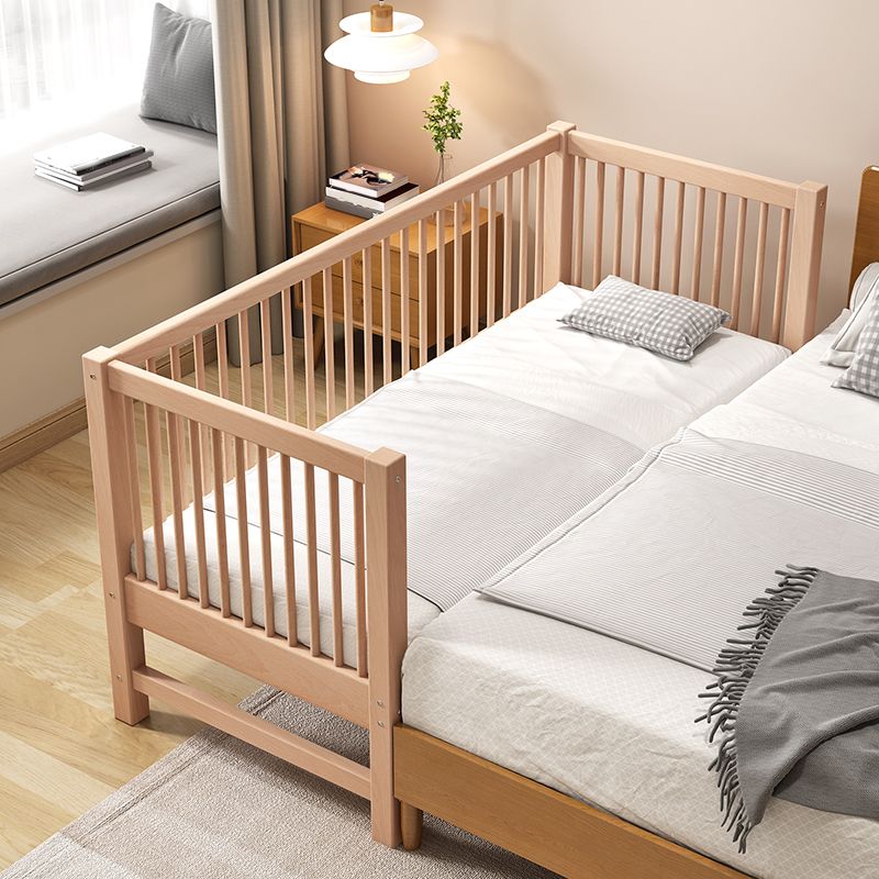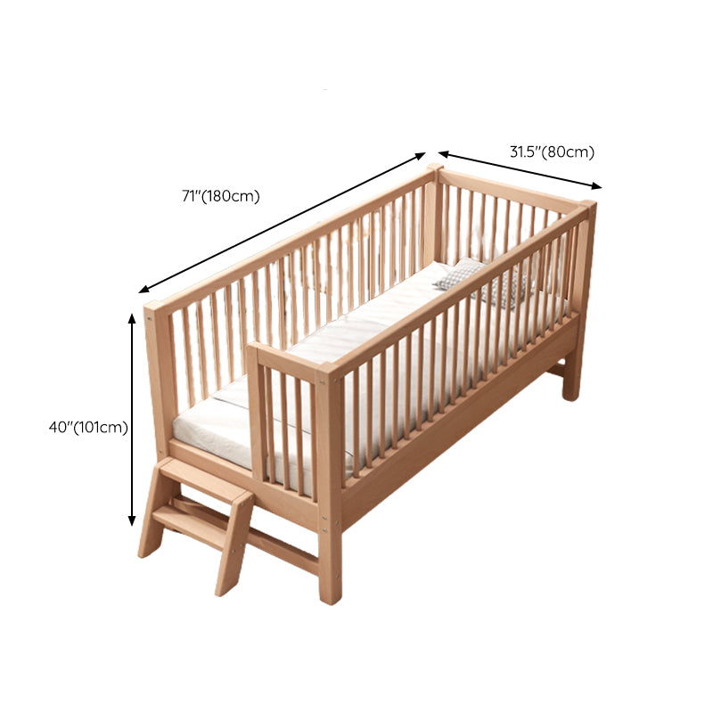 Solid Wood Baby Crib Traditional Beech Nursery Crib with Guardrails