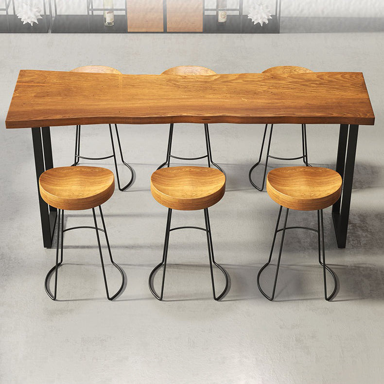Solid Wood Bar Table Brown Industrial Bar Dining Table with Sled Base