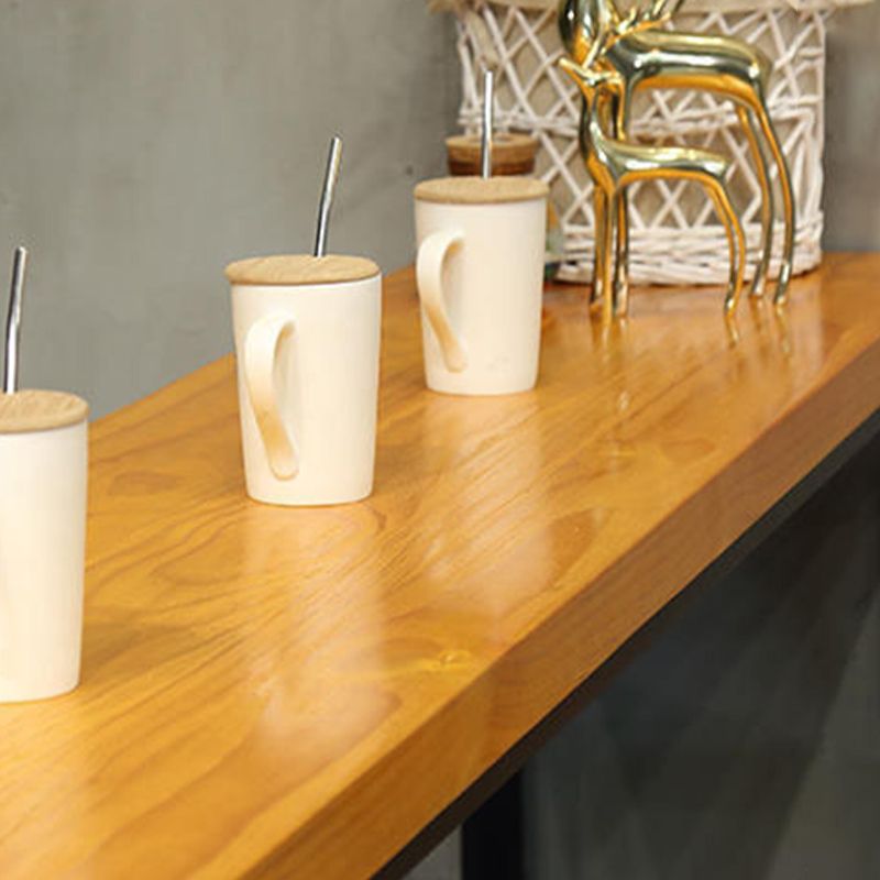 Solid Wood Bar Table Industrial Rectangle Bar Table with Trestle Base in Black