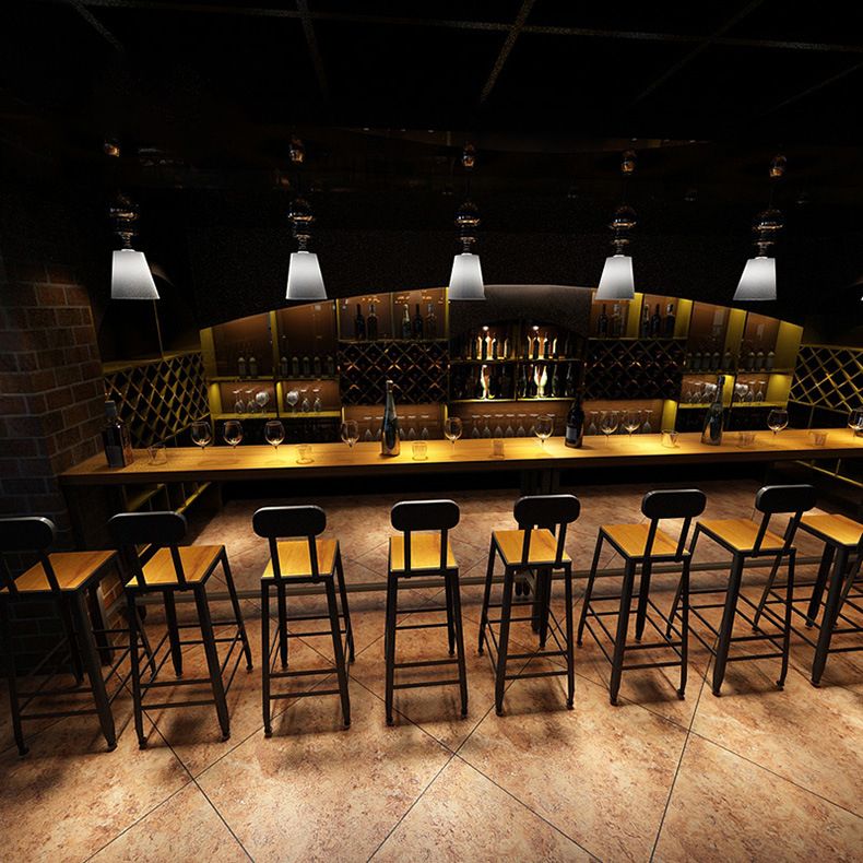 Solid Wood Bar Table Rectangle Industrial Bar Dining Table with Trestle Base