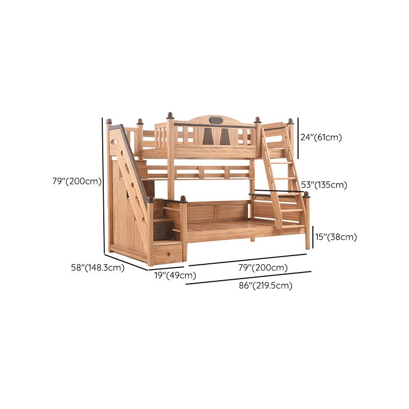 Solid Wood Bunk Bed Mid-Century Modern Storage Gender Neutral Kids Bed