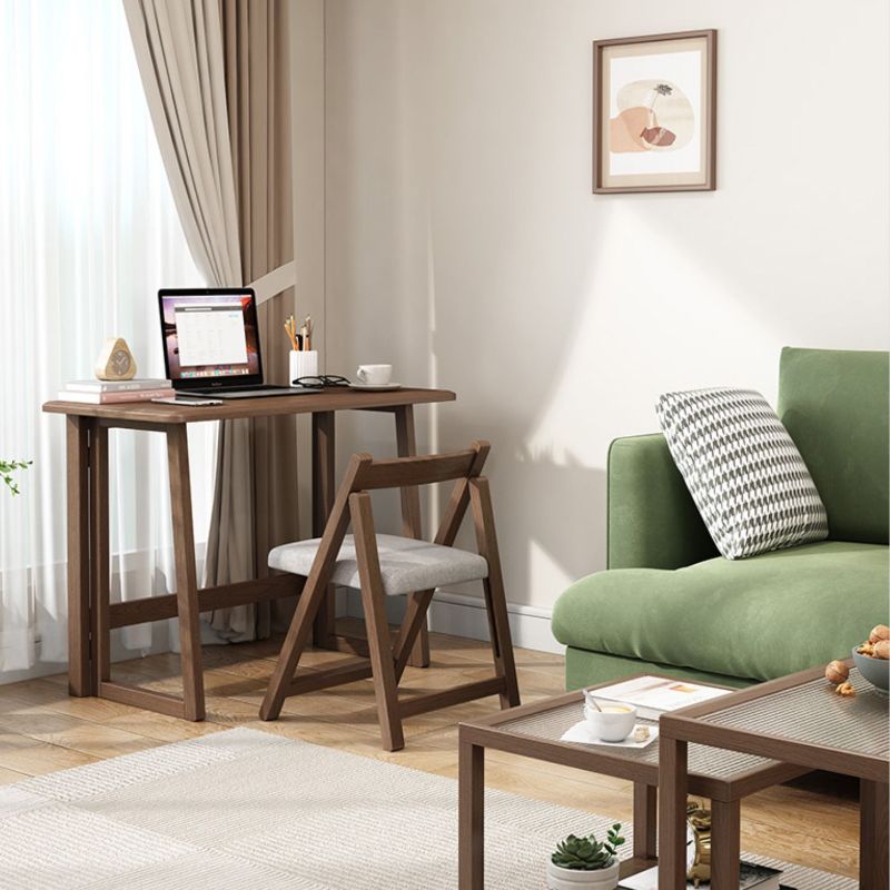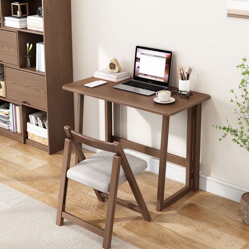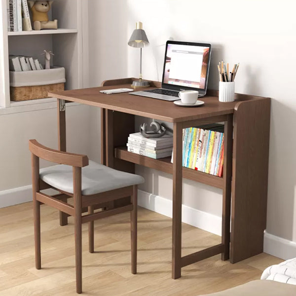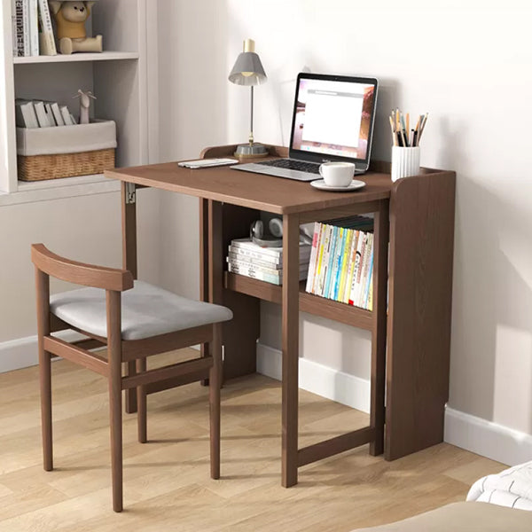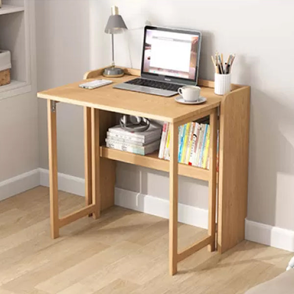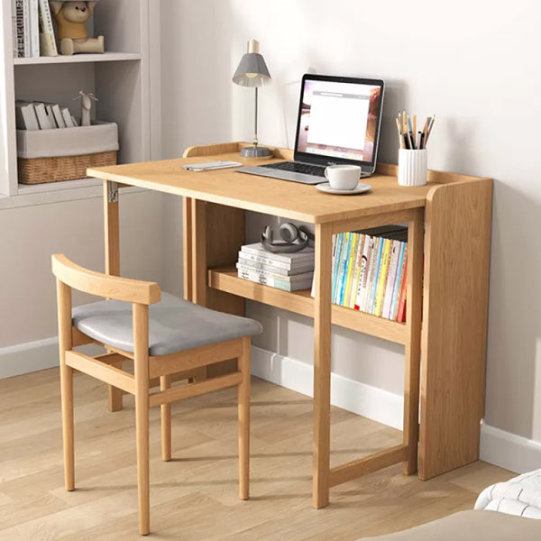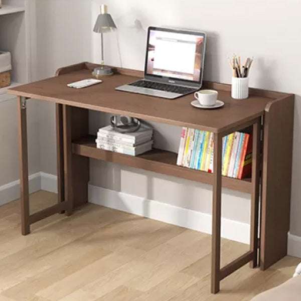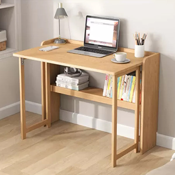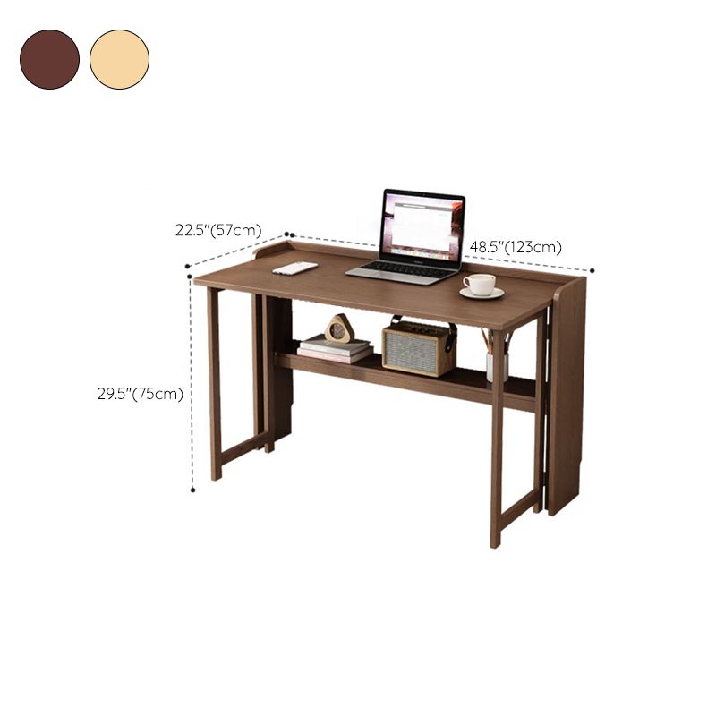 Solid Wood Computer Desk Home Foldable with Storage Shelves Student Desk