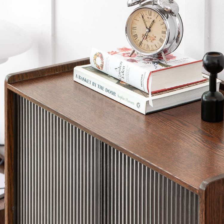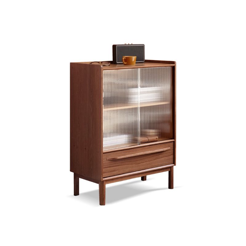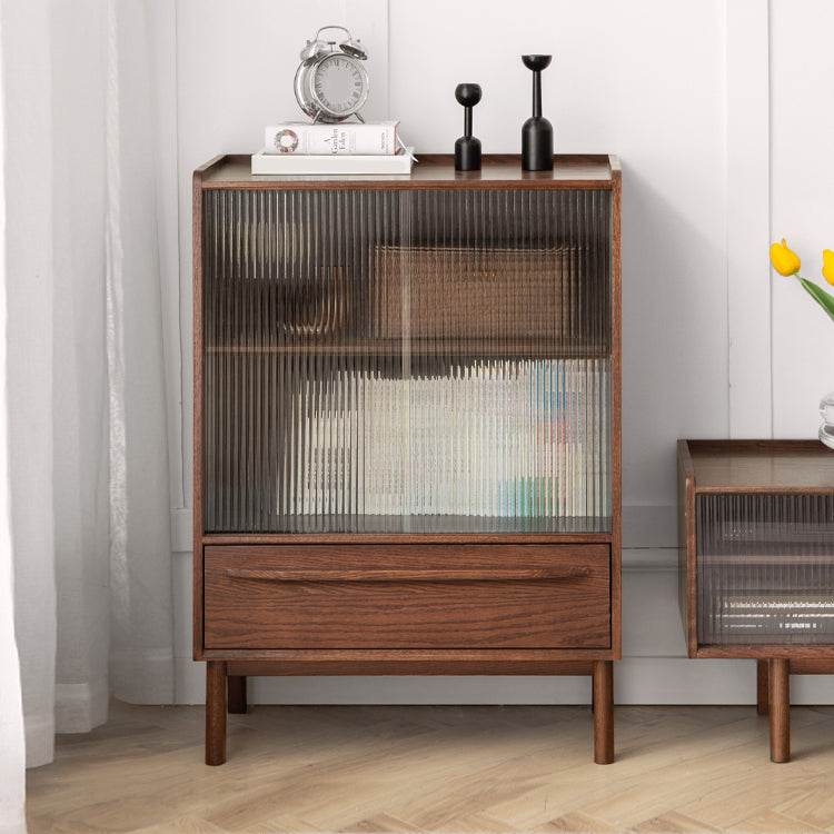 Solid Wood Glass Paned Brown 1 - Drawer Accent Cabinet for Living Room