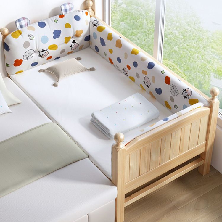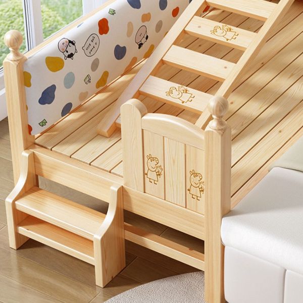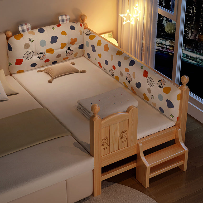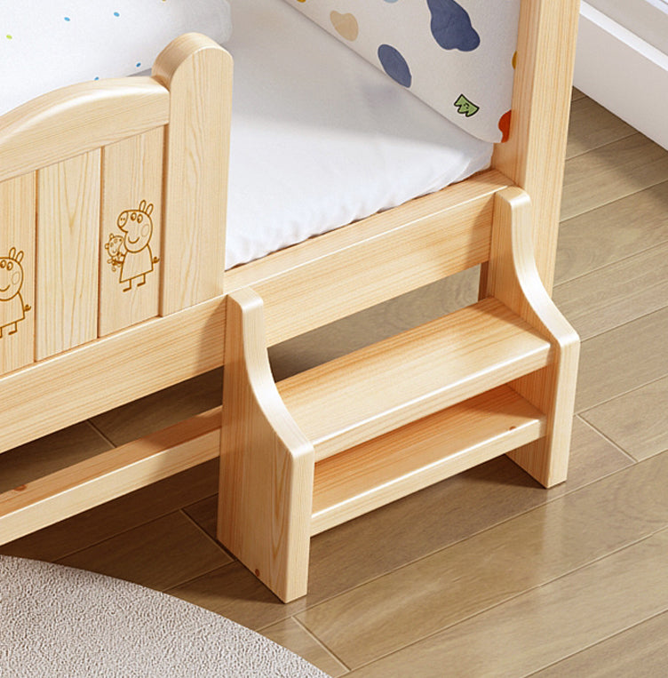 Solid Wood Kids Bed with Detachable Guardrails Modern Natural Bed with Mattress