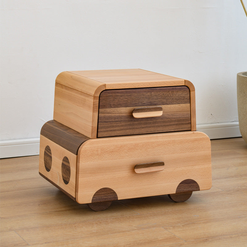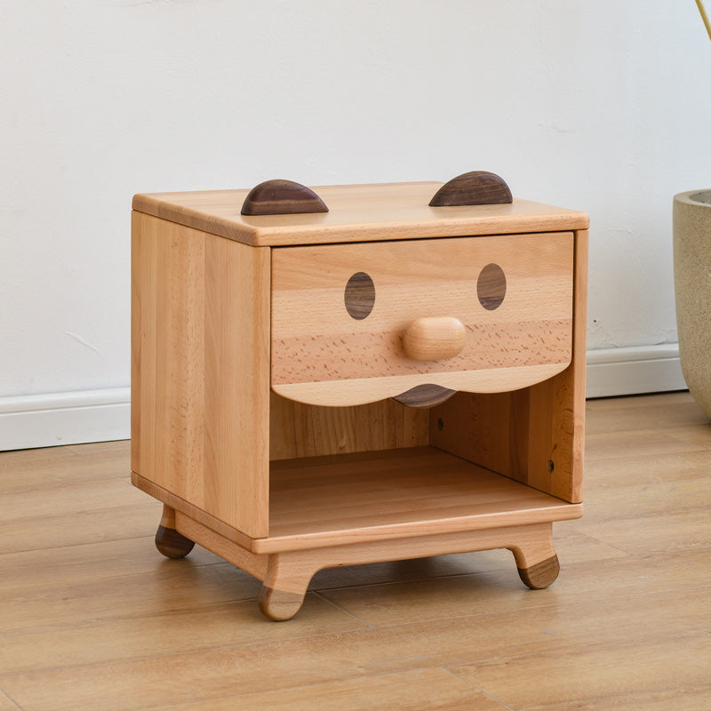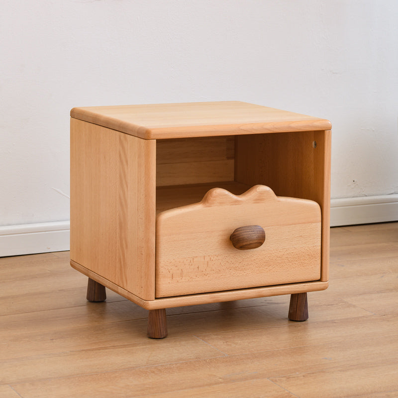 Solid Wood Kids Bedside Table Modern Minimalist Nursery Nightstand with Drawers