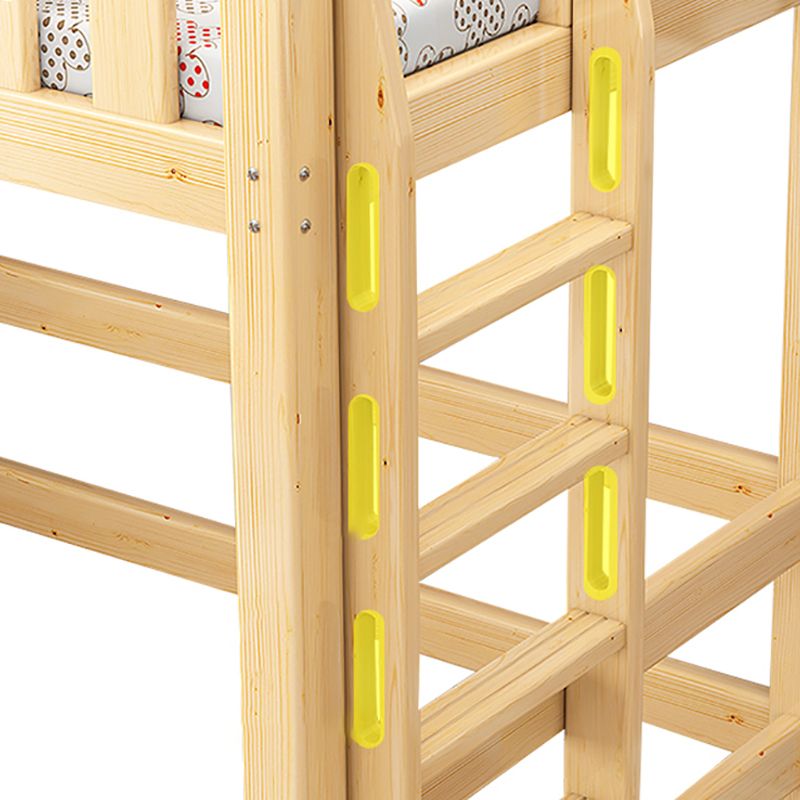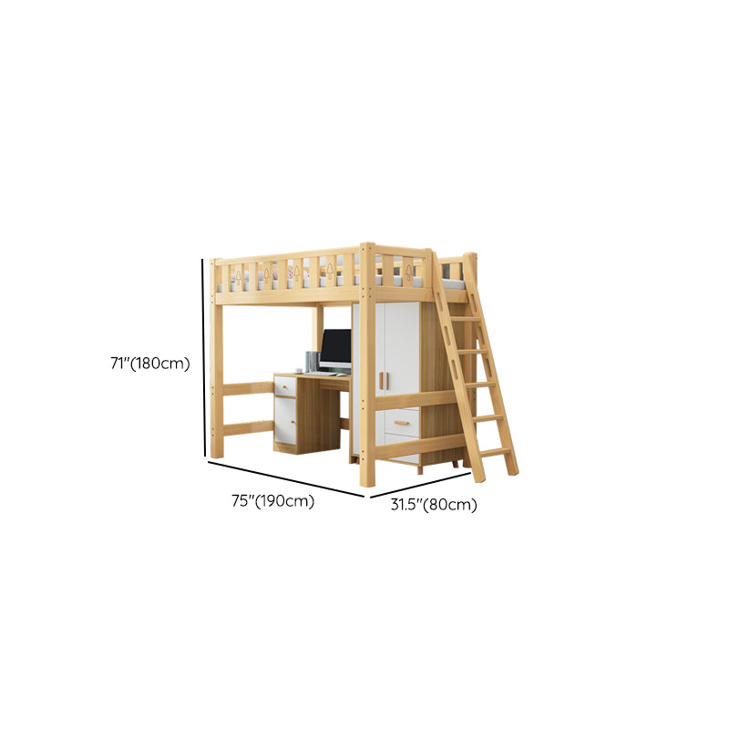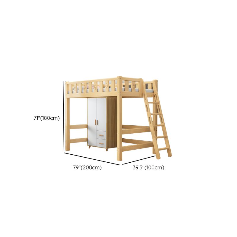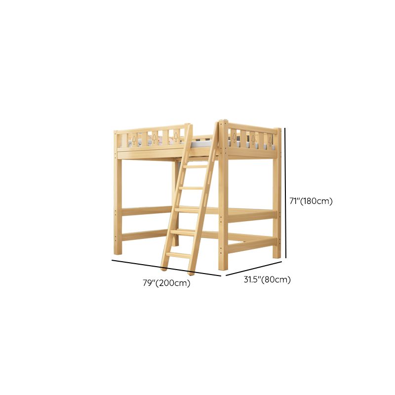 Solid Wood Loft Bed Brown Kids Bed with Built-In Ladder and Guardrail