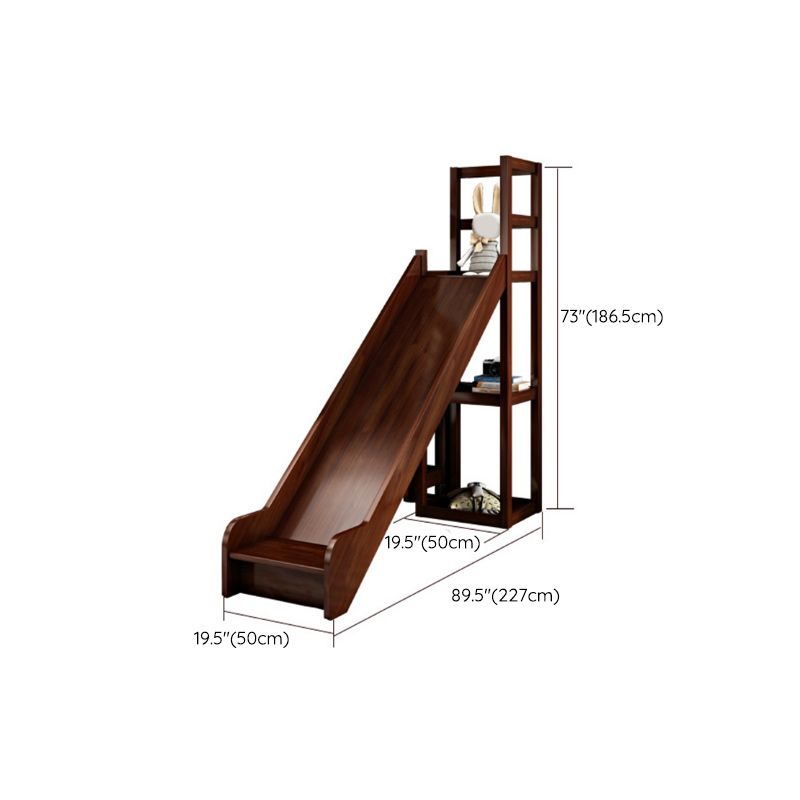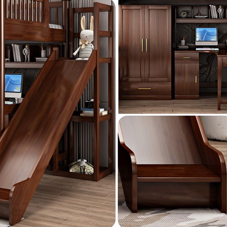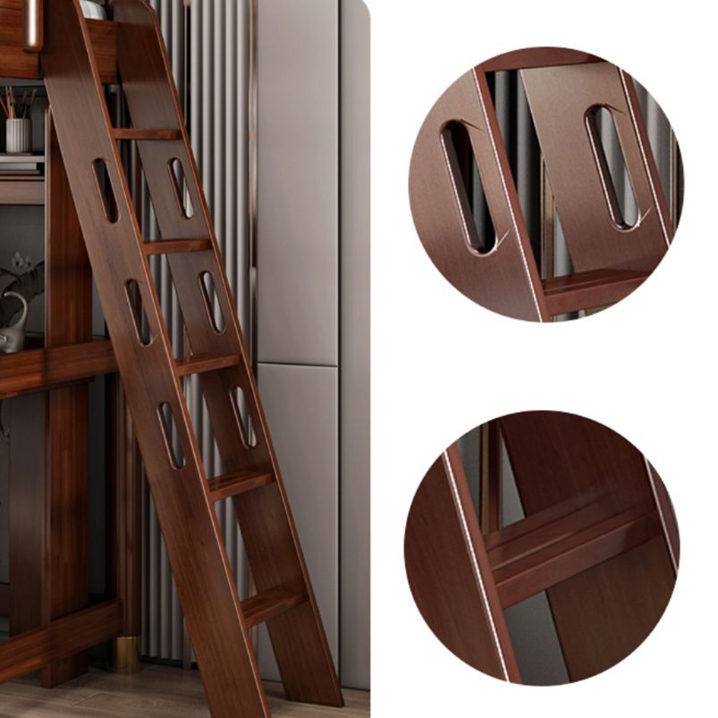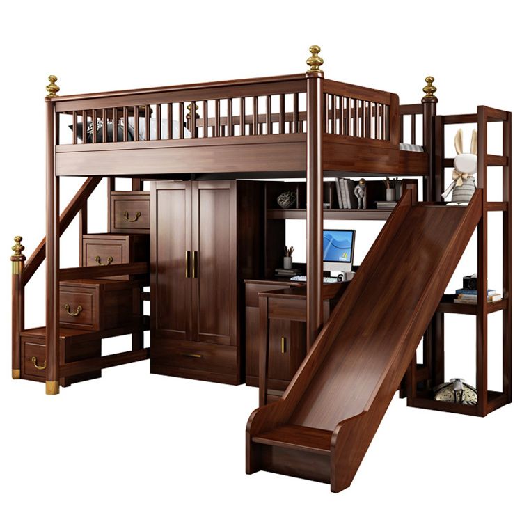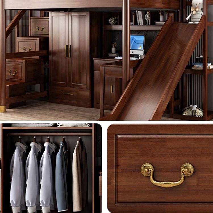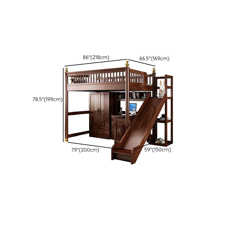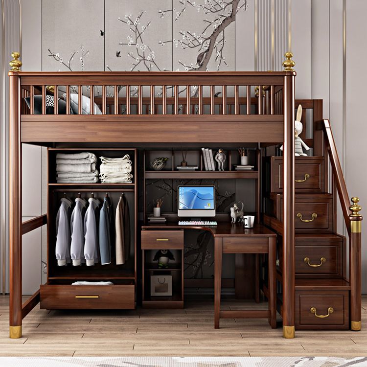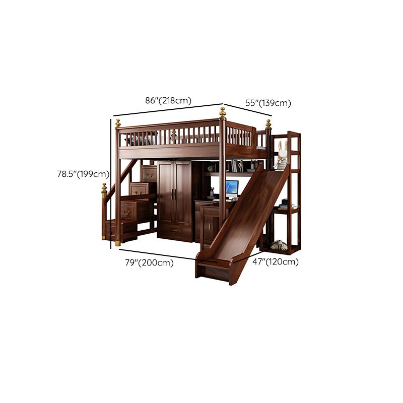 Solid Wood Loft Bed with Storage Scandinavian Brown Kids Bed with Open Frame