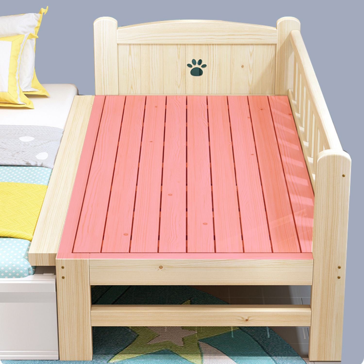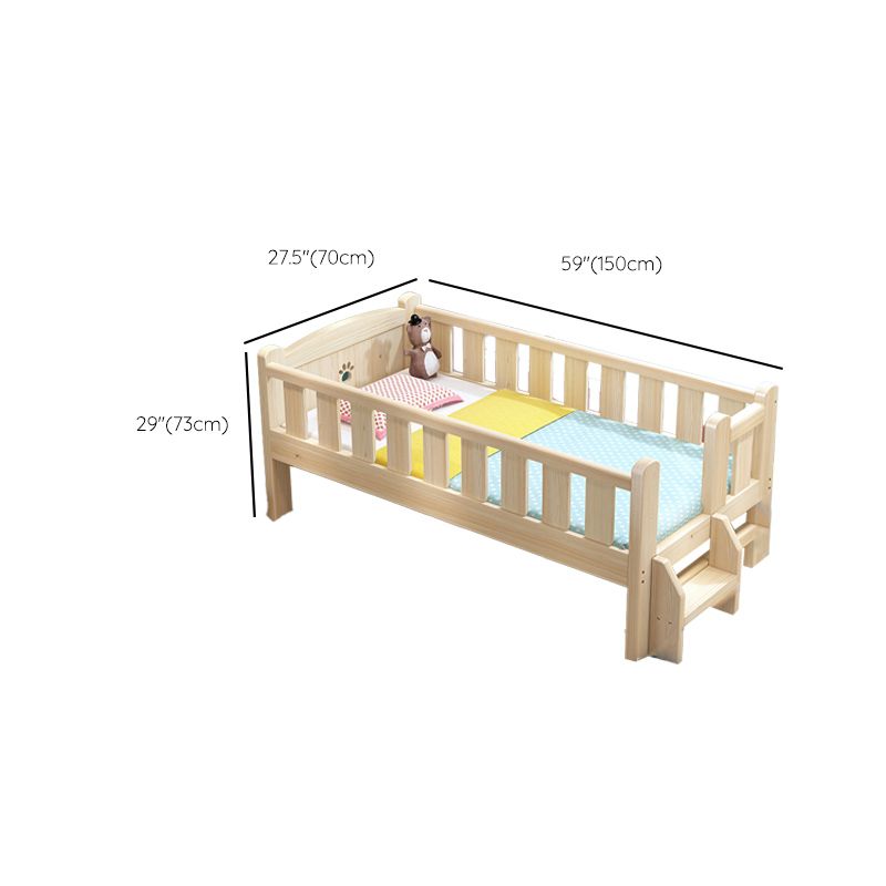 Solid Wood Nursery Bed Light Wood Ultra-Modern with Guardrail