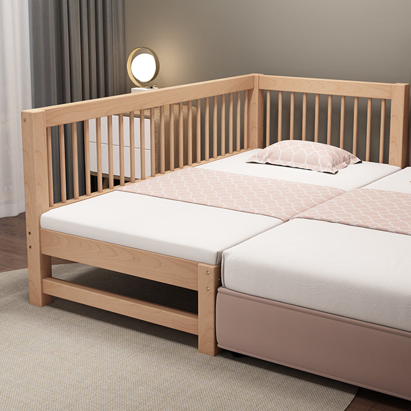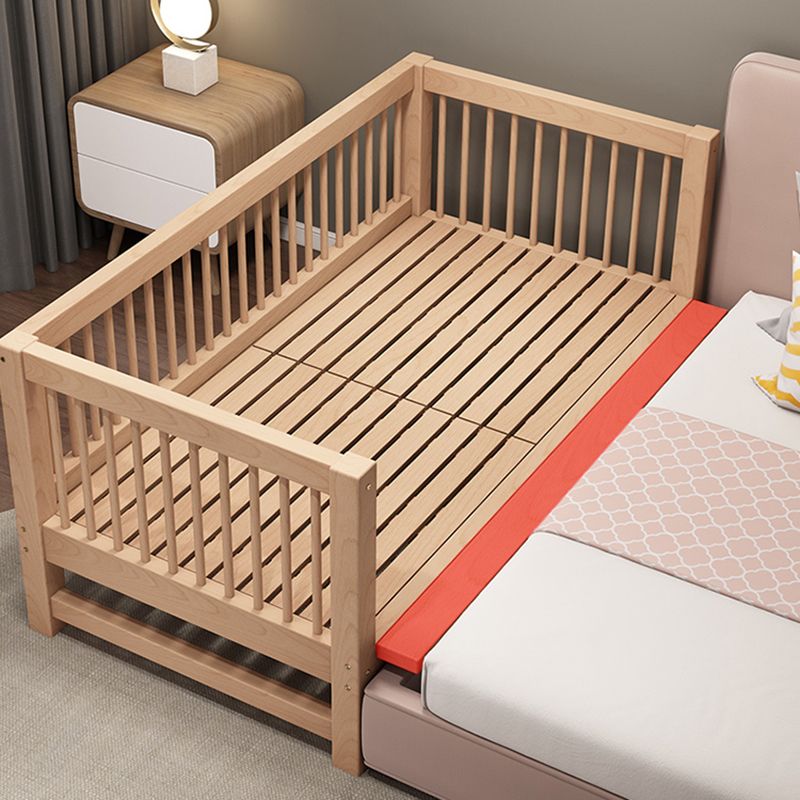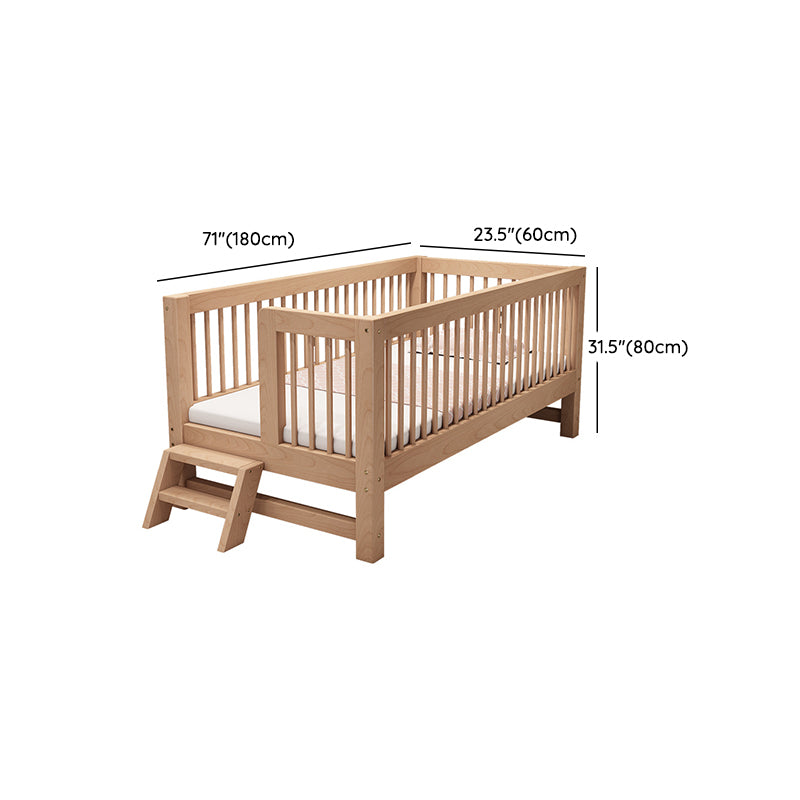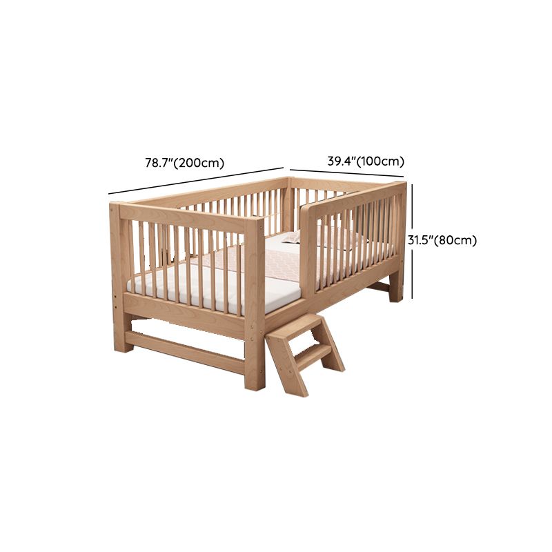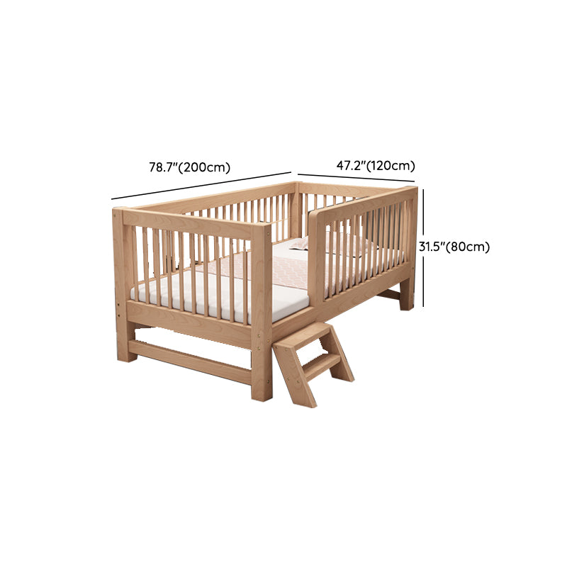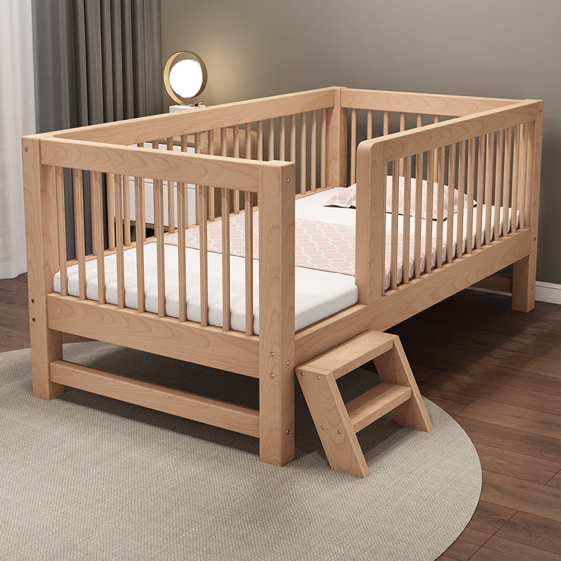 Solid Wood Nursery Bed Modern Beech Baby Crib with Guardrails