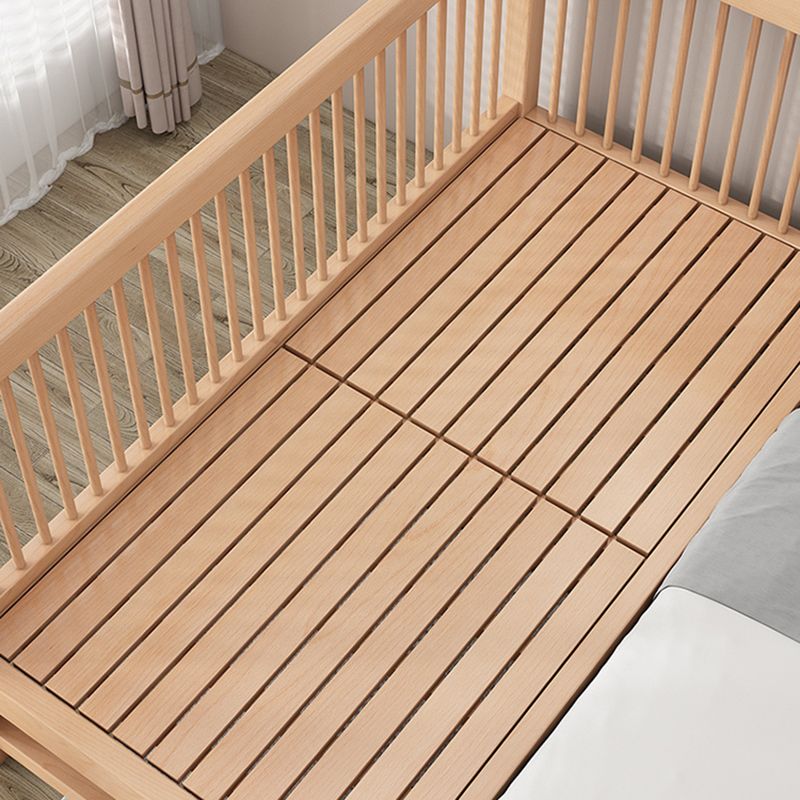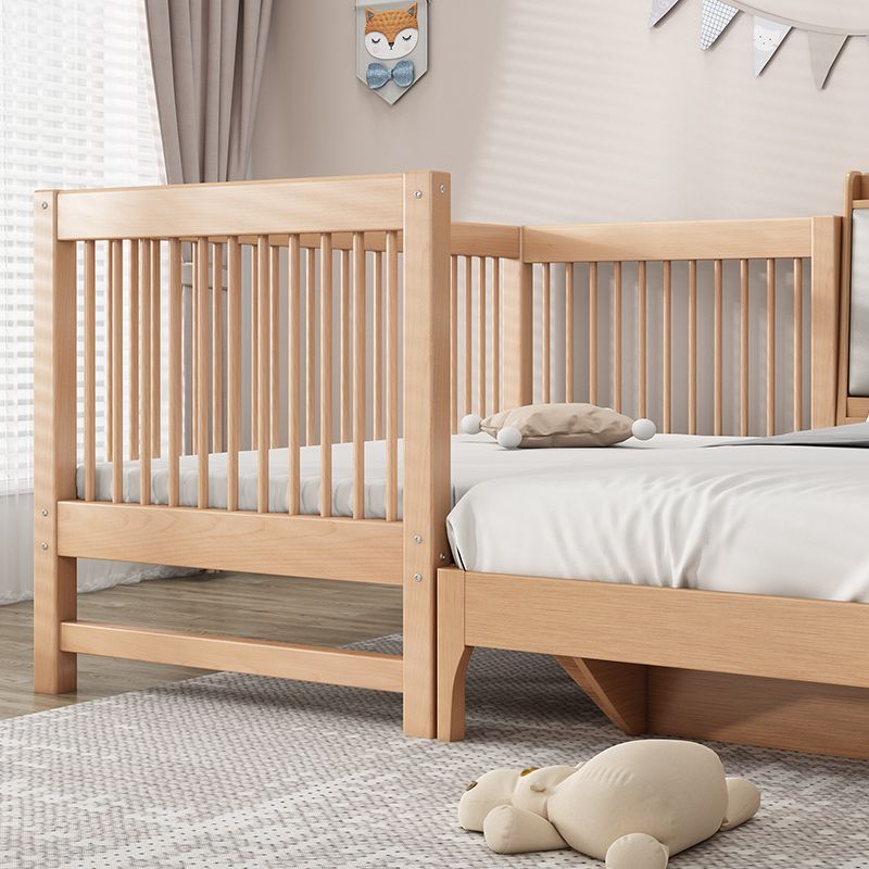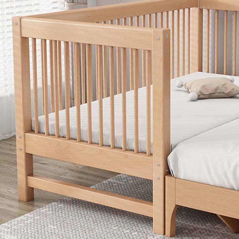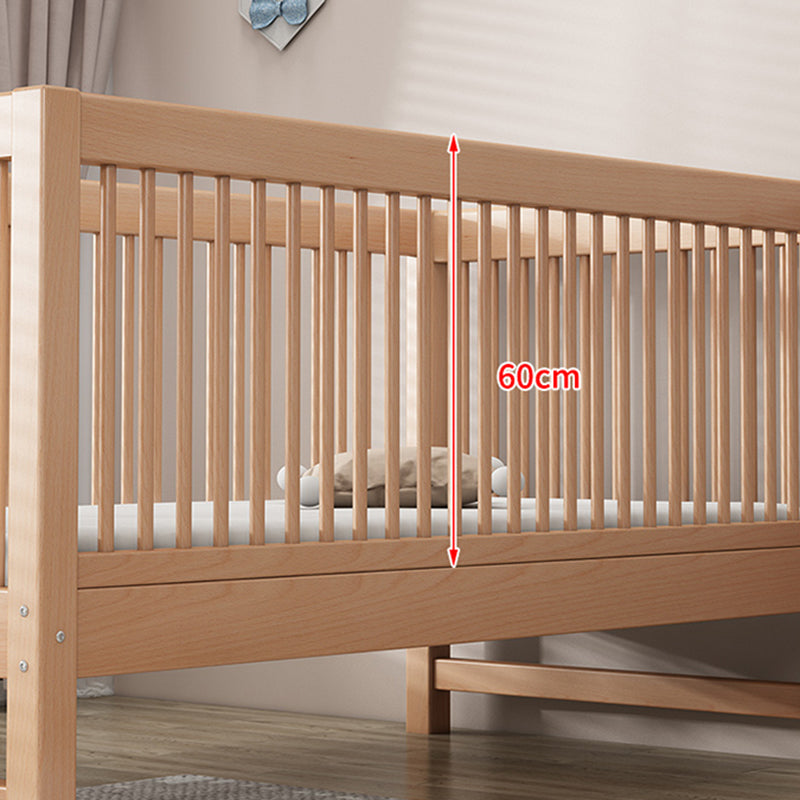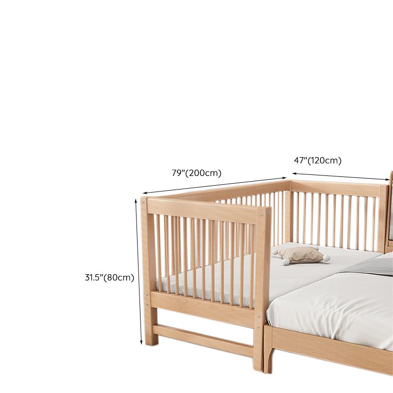 Solid Wood Nursery Crib in Natural Nursery Bed with Guardrails