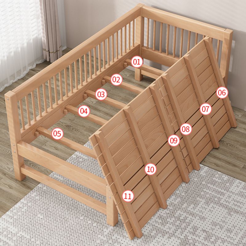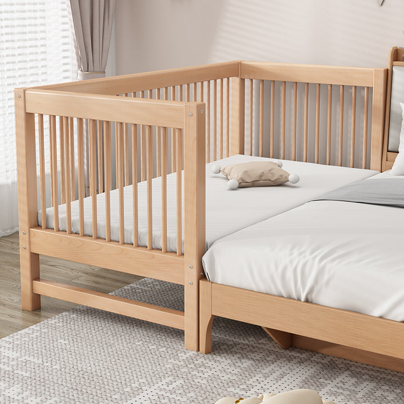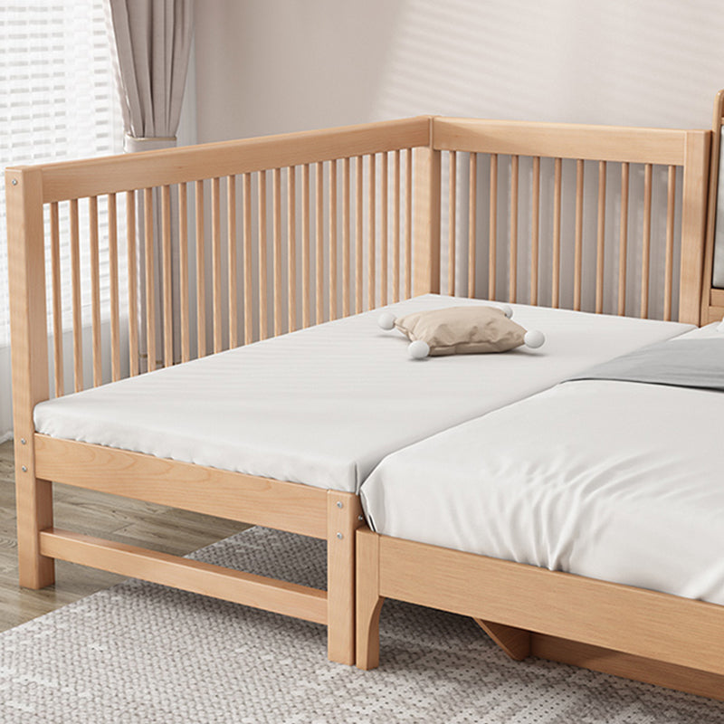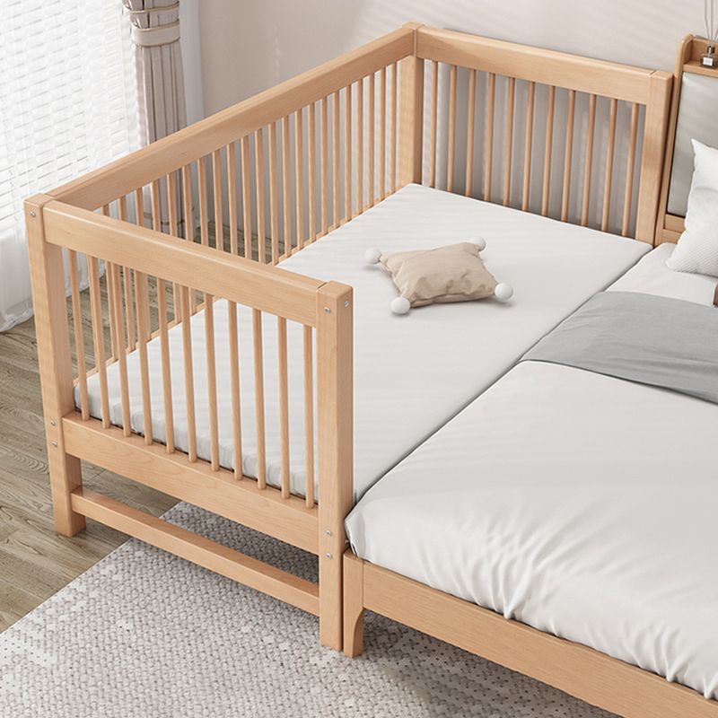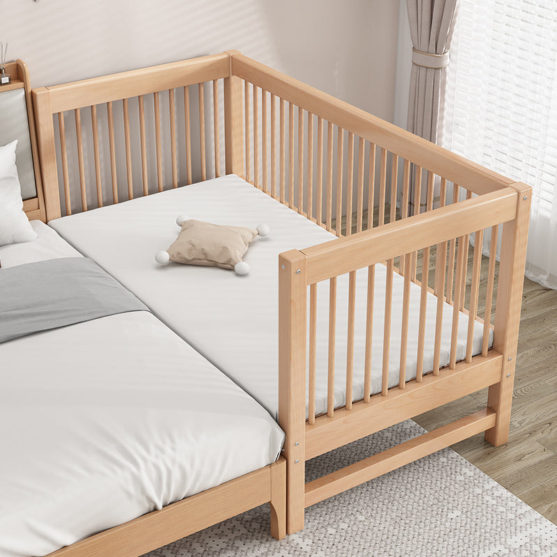 Solid Wood Nursery Crib in Natural Nursery Bed with Guardrails
