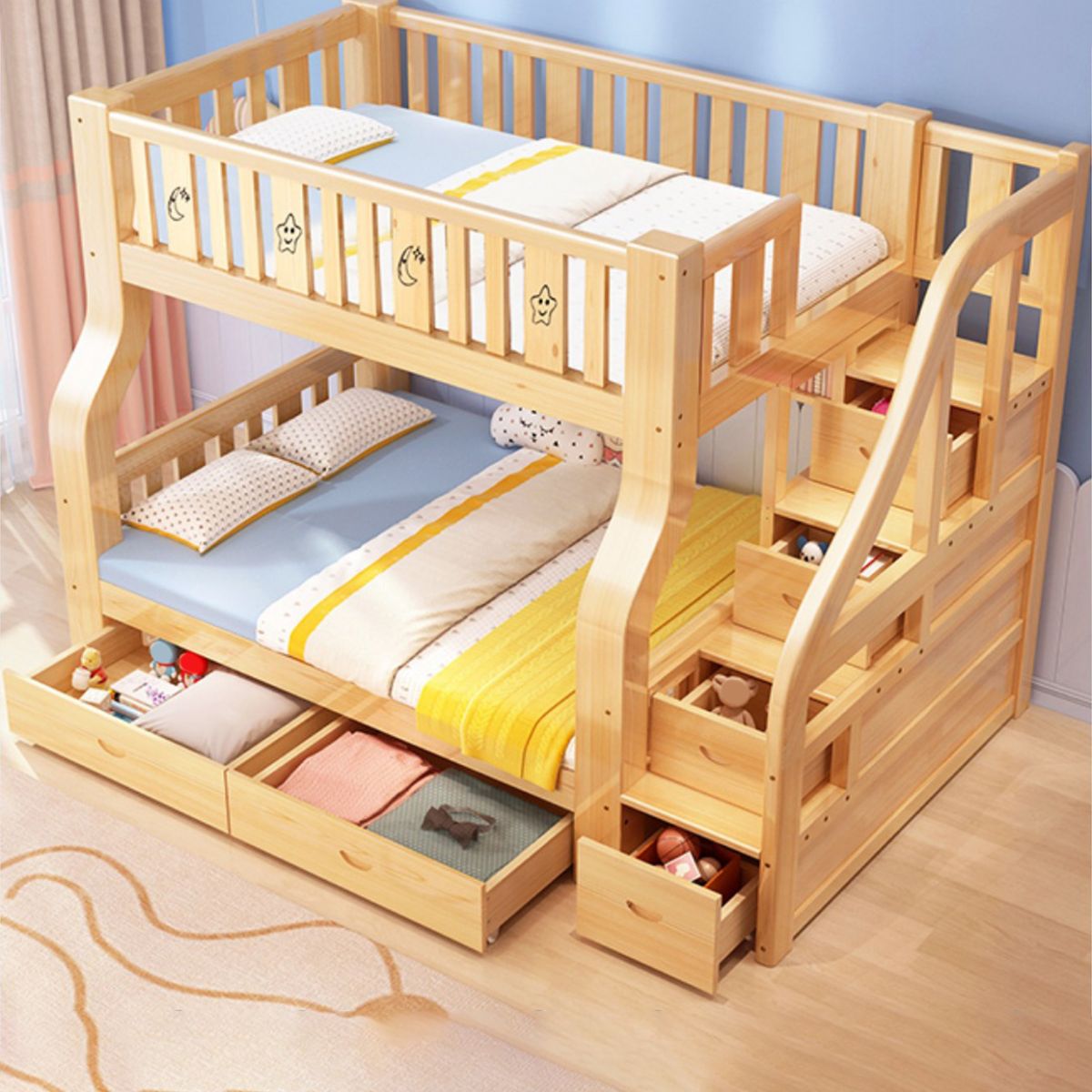 Solid Wood Scandinavian Kids Bed Gender Neutral Bunk Bed with Shelves