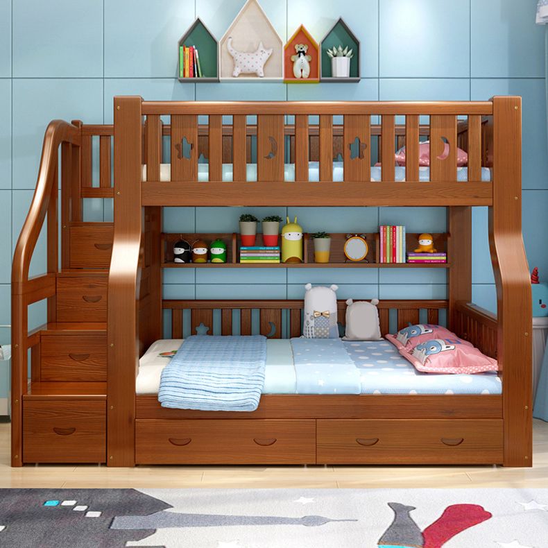 Solid Wood Standard Bunk Bed Gender Neutral Kids Bed with Drawers and Mattress