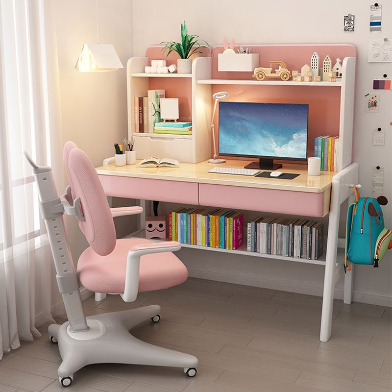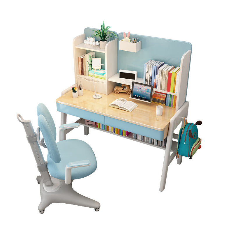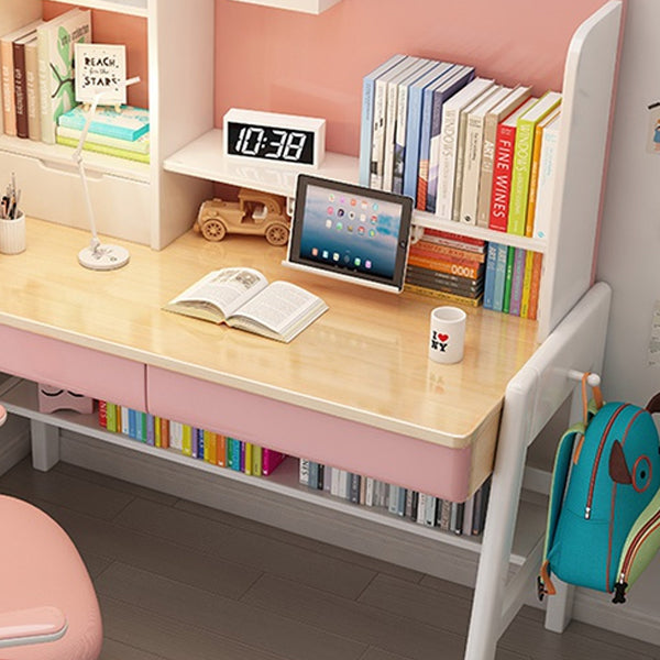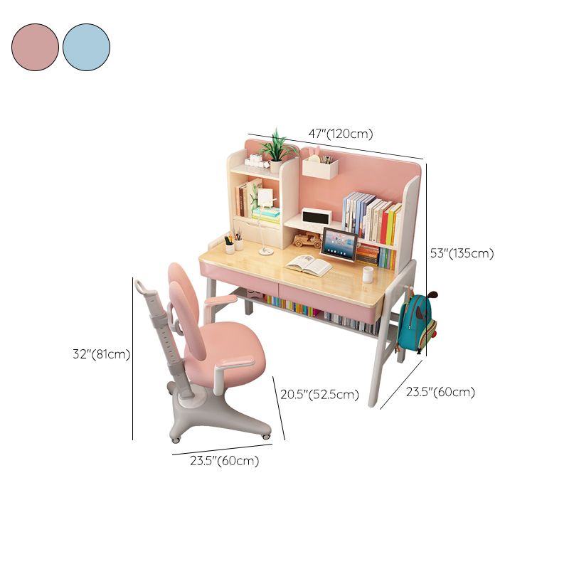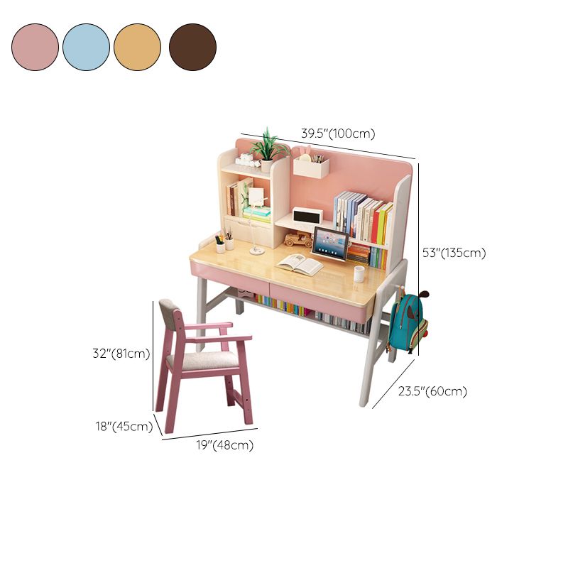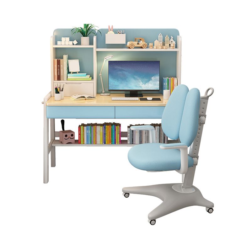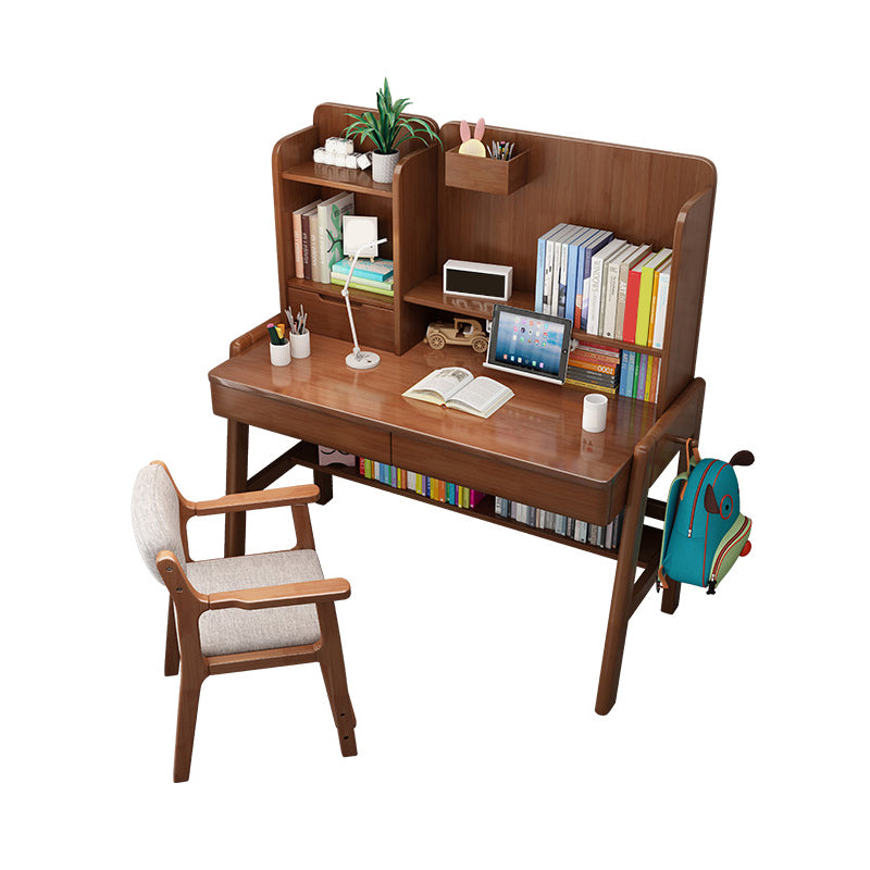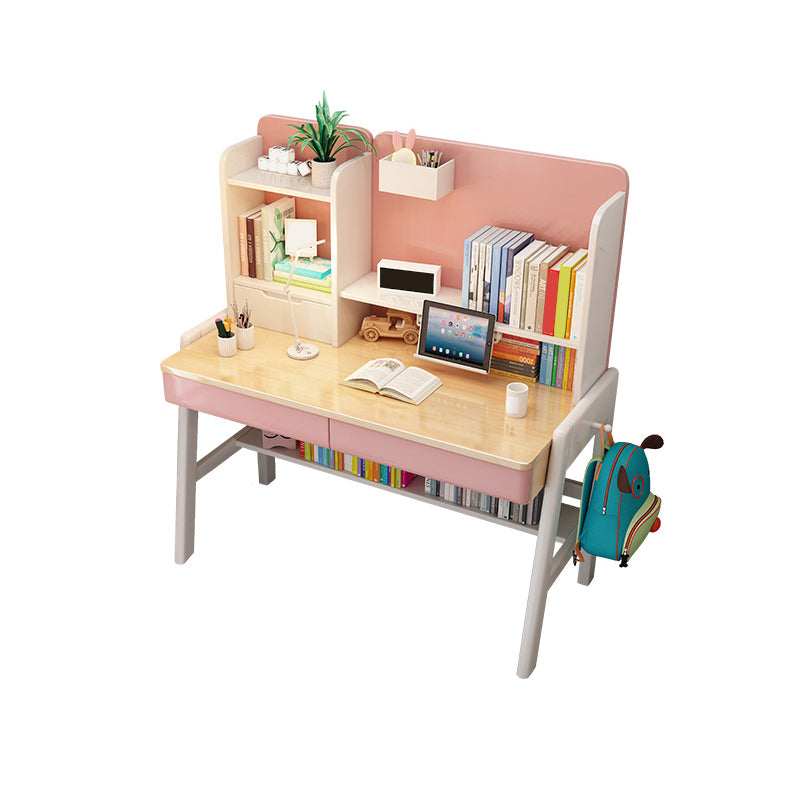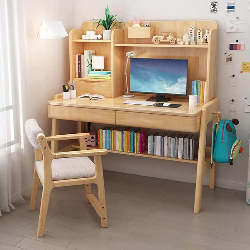 Solid Wood Student Table Desk with Drawer with Storage Shelves Multifunctional Lifting