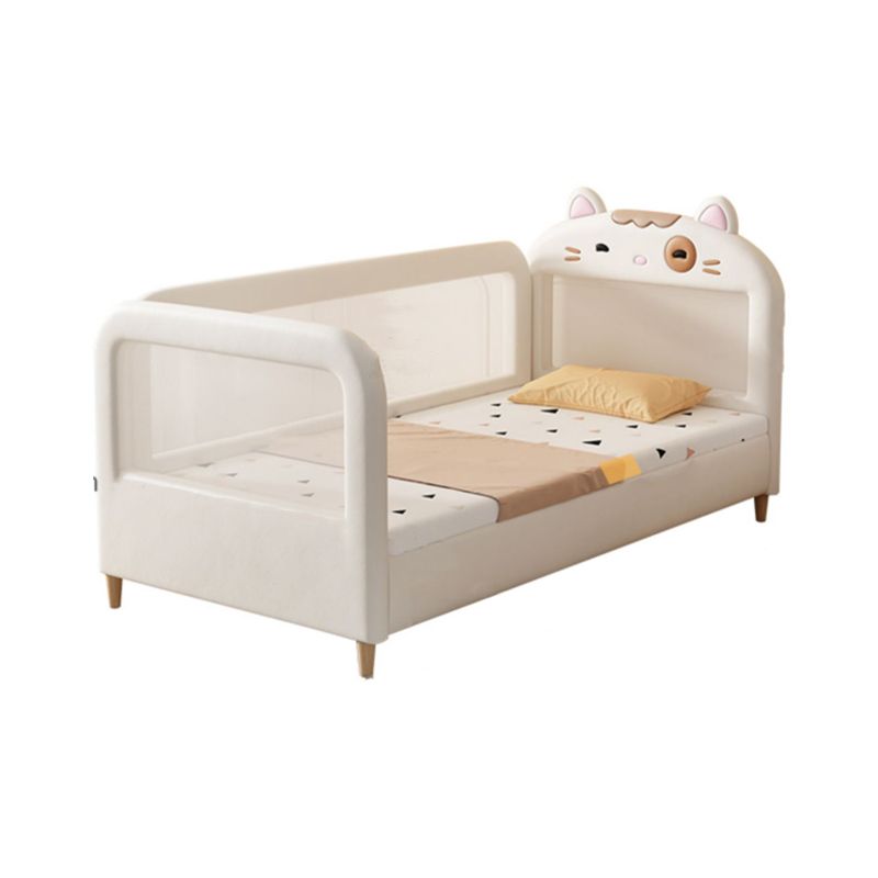 Solid Wood Twin Size Kids Bed Modern White Cat Bed Frame with Mattress
