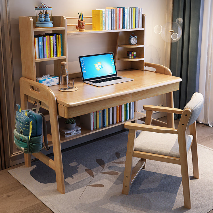 Solid Wood Writing Desk with Drawers Adjustable Kids Desk and Chair