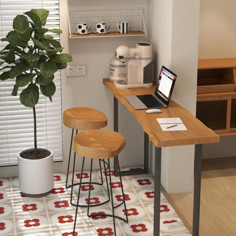 Specialty Brown Modern Style Bar Table in Solid Wood and Metal Balcony Bar Table