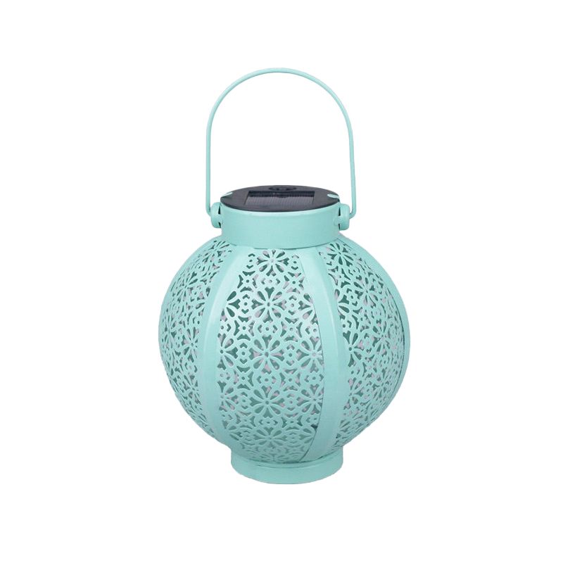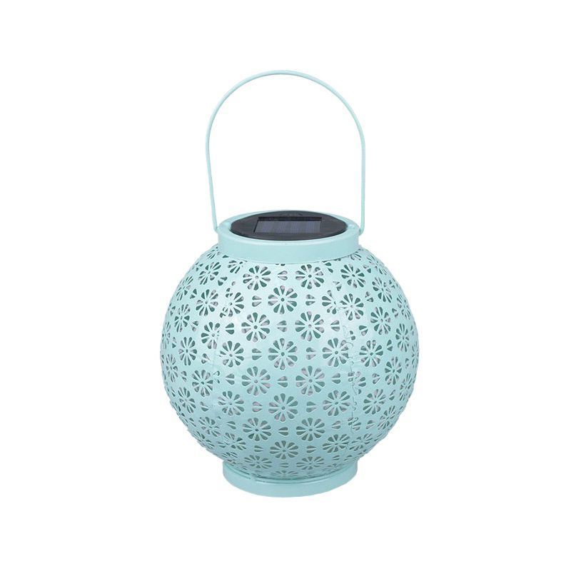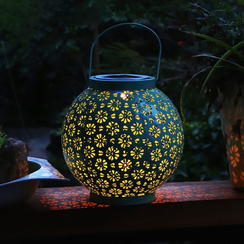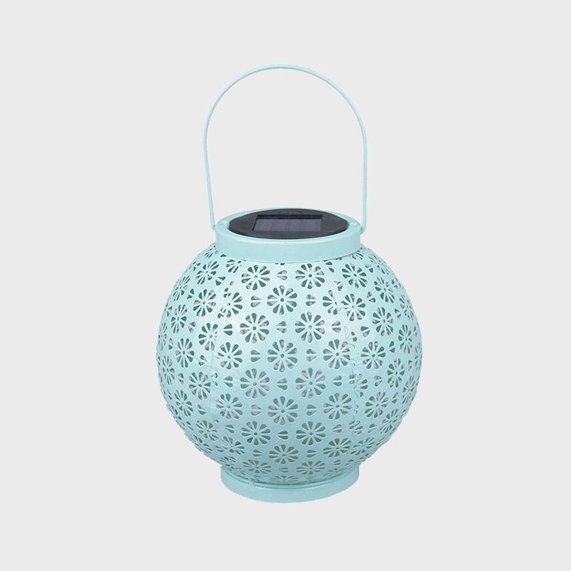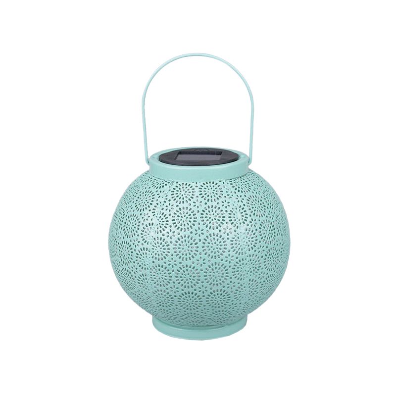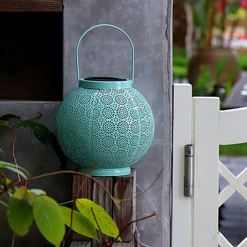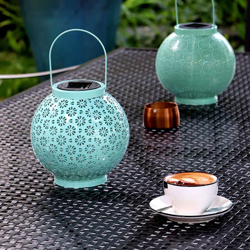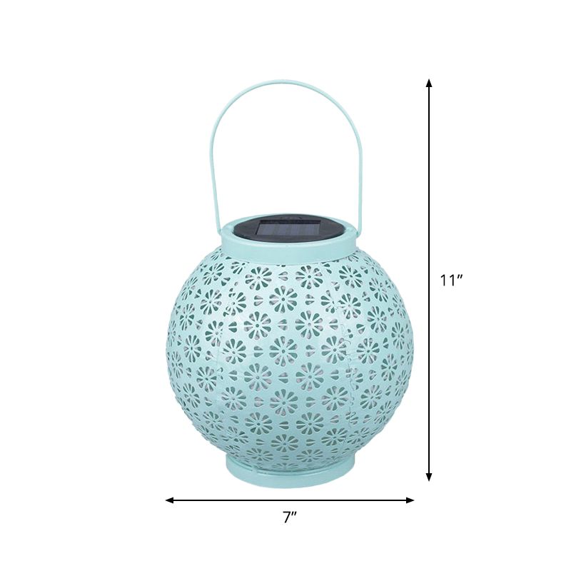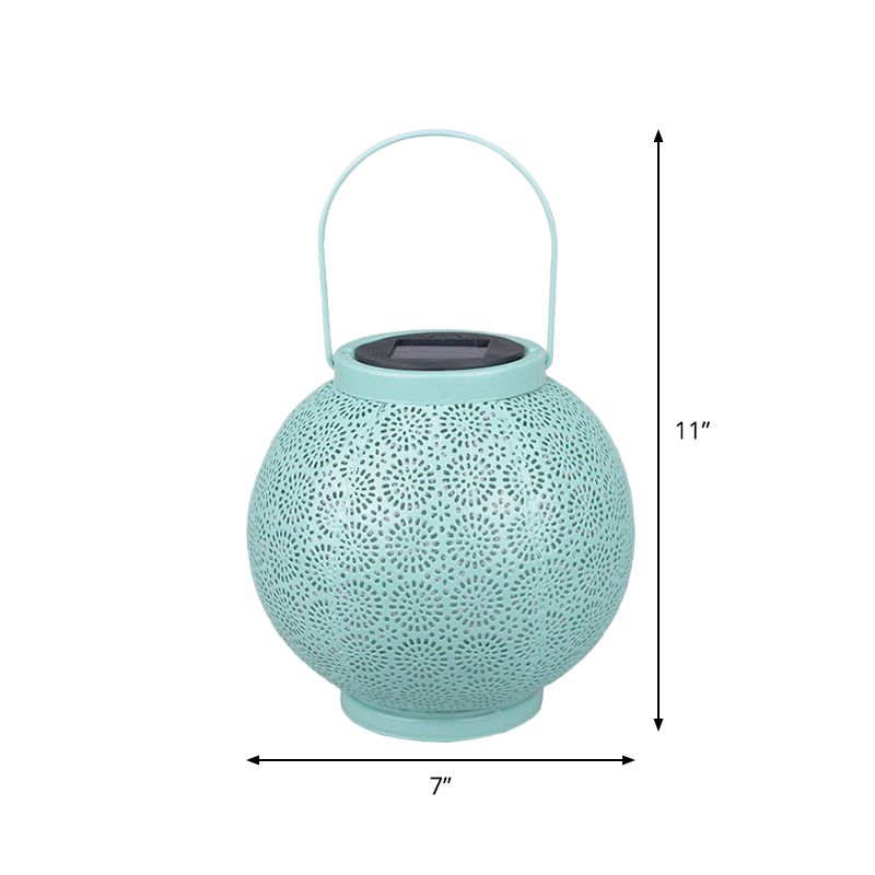 Sphere Hollowed Out Solar Table Lamp Simple Stylish Metal Garden LED Ground Light with Handle in Green