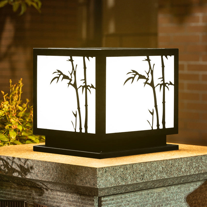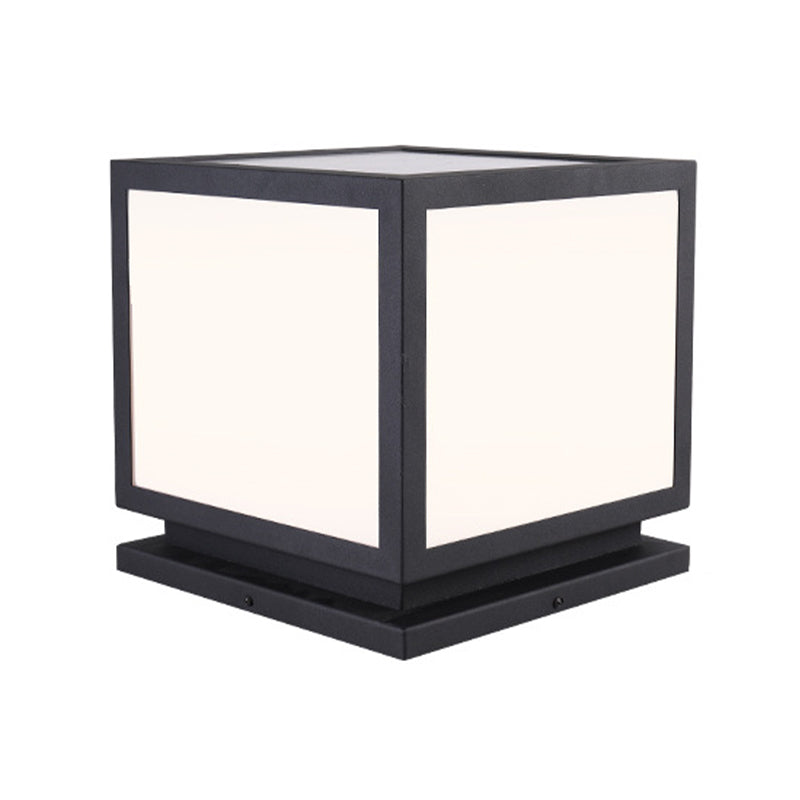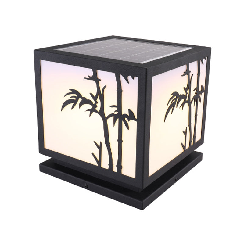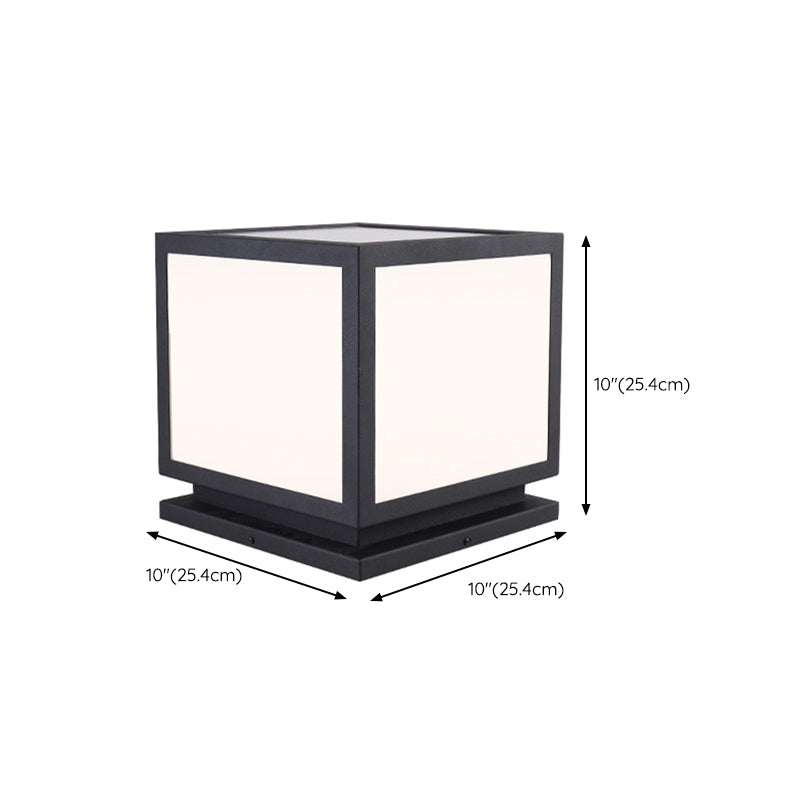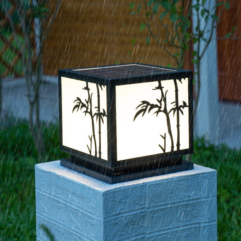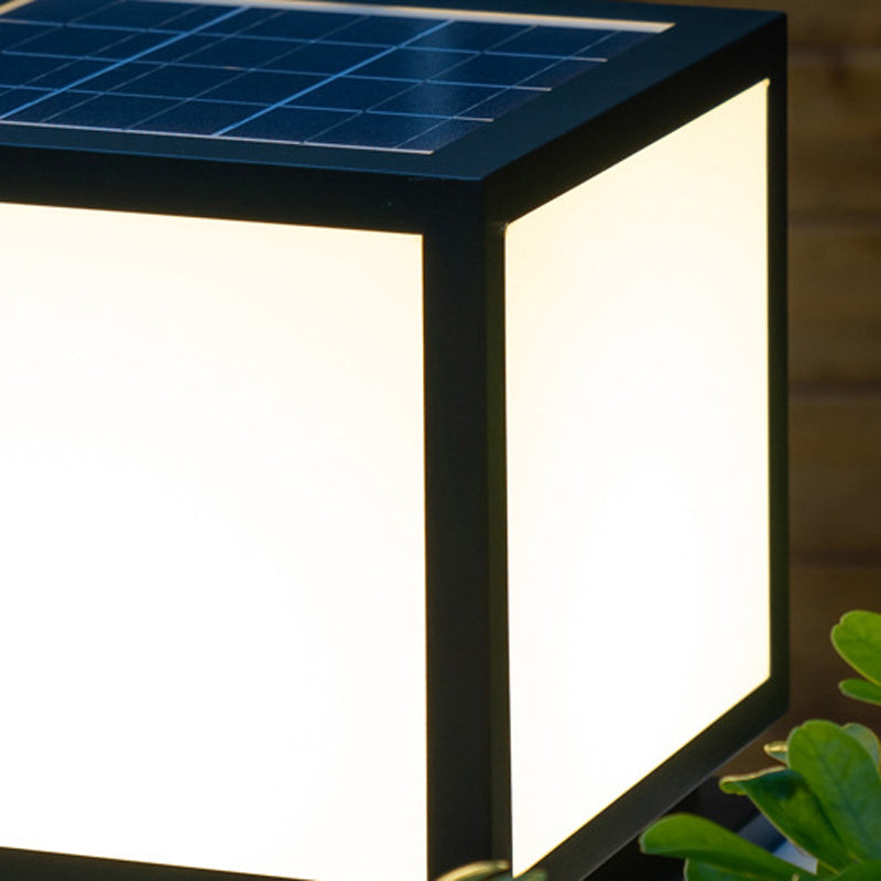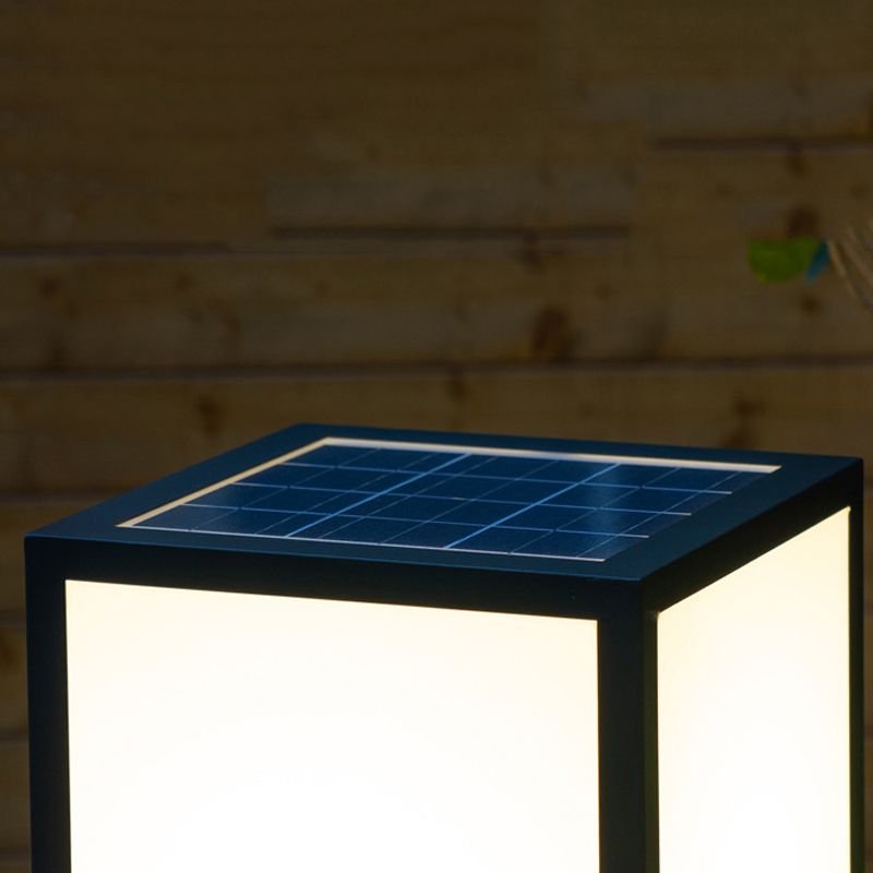 Square Shape Metal Pillar Lamp Modern Style 1 Light Solar Outdoor Light in Black