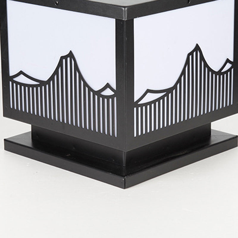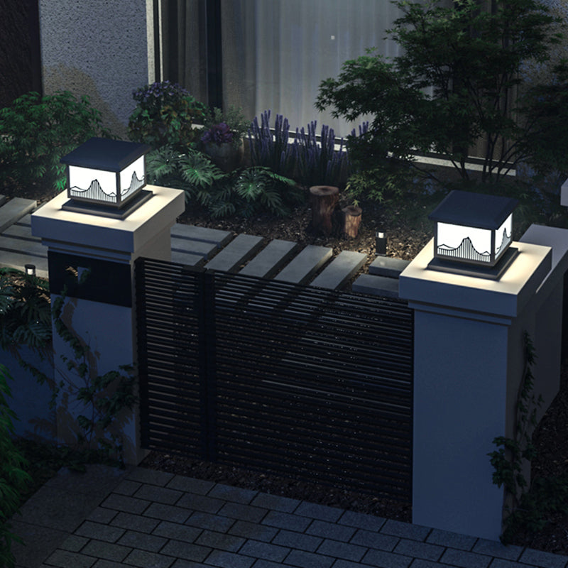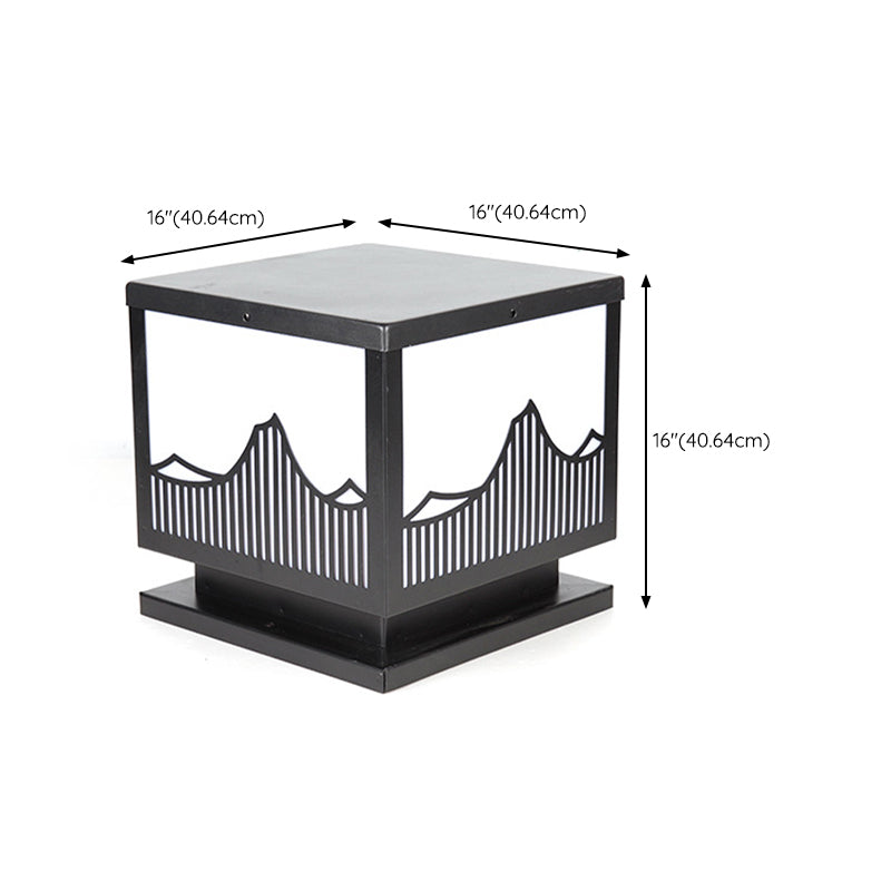 Square Shape Metal Pillar Lamp Modern Style 1 Light Waterproof Outdoor Light in Black
