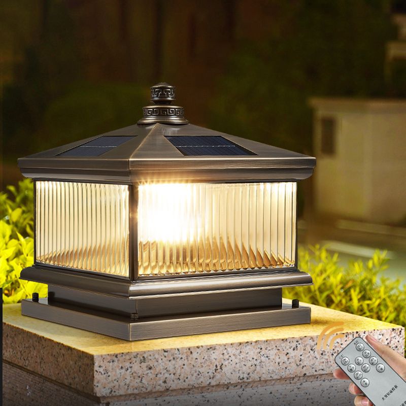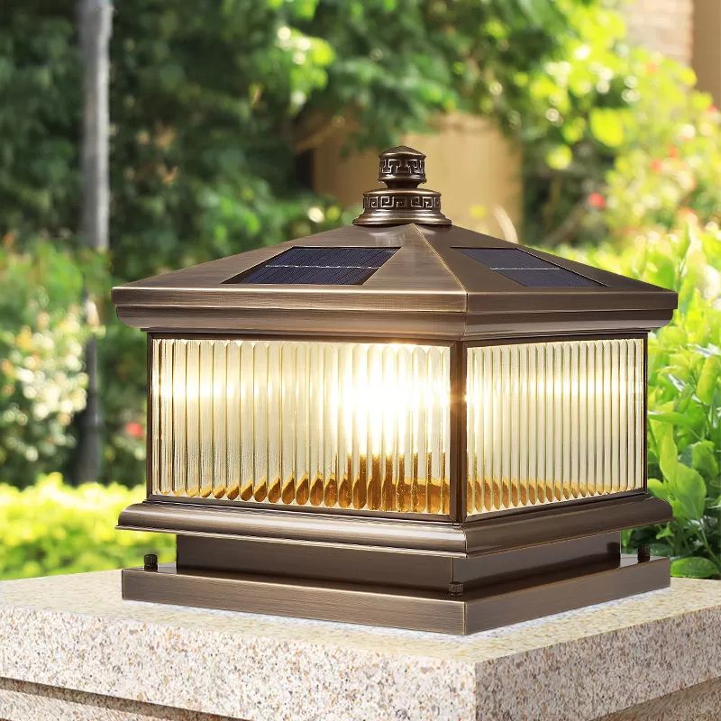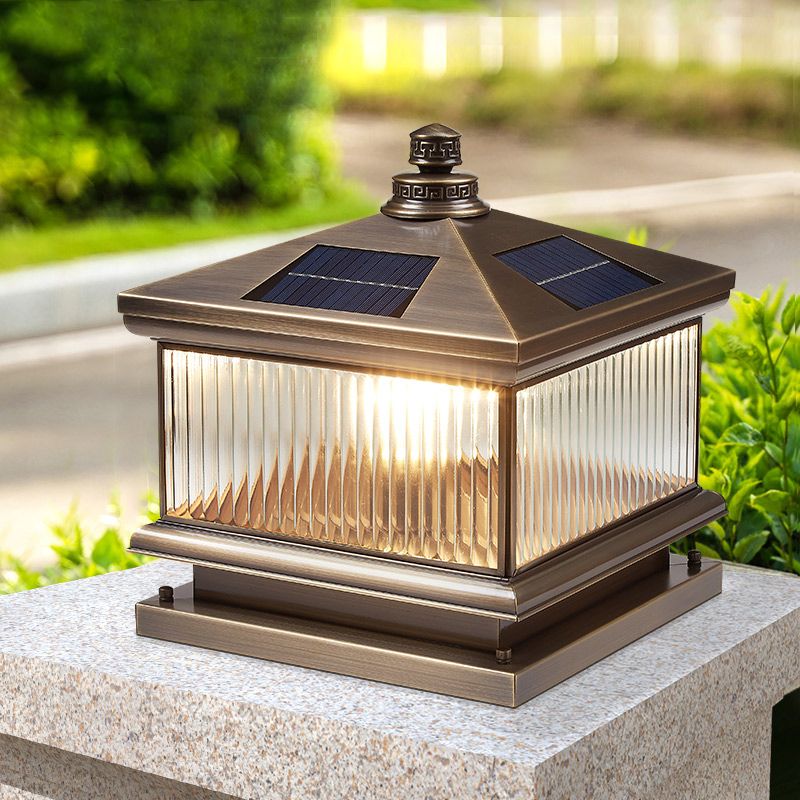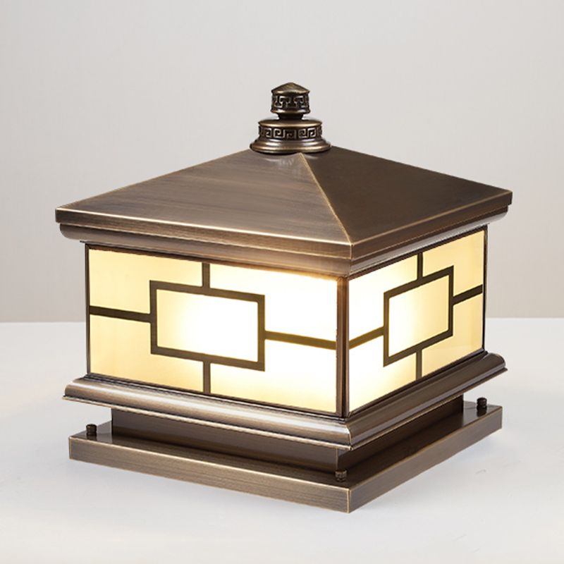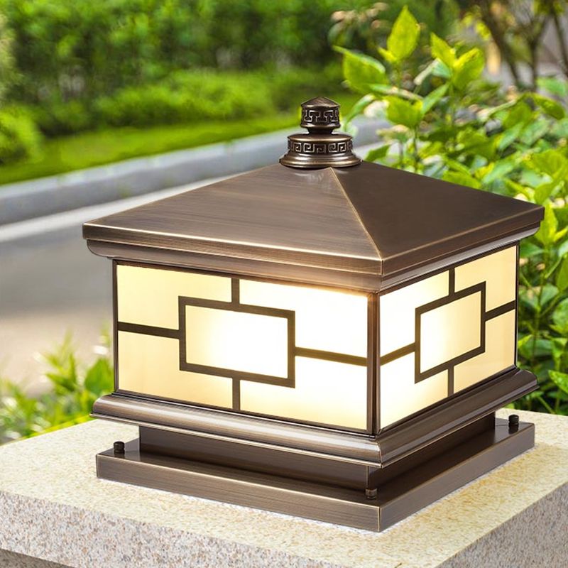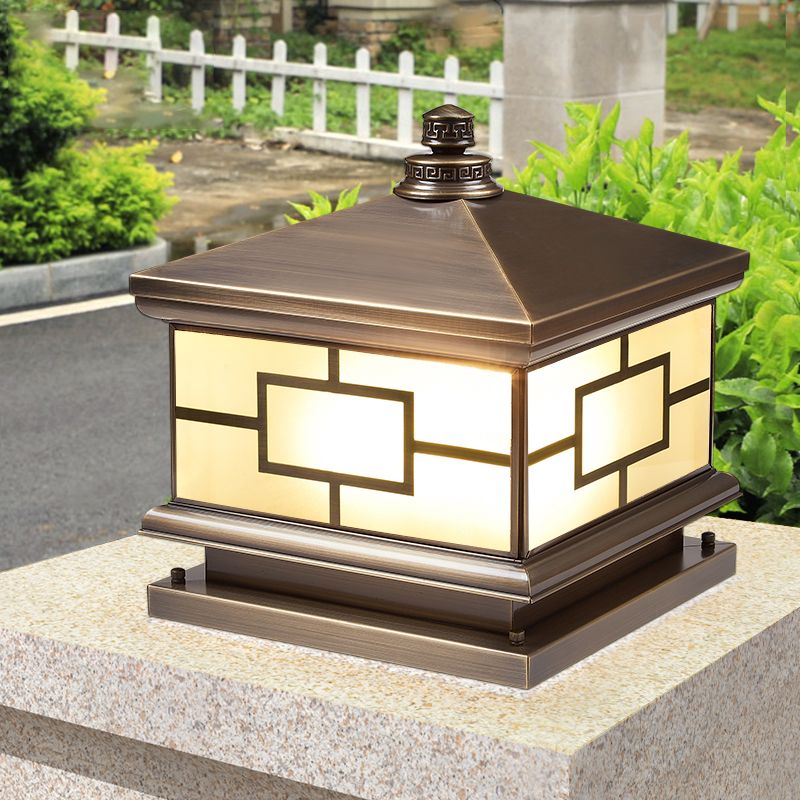 Square Shape Waterproof Pillar Lamp Modern Metal Outdoor Lights in Bronze