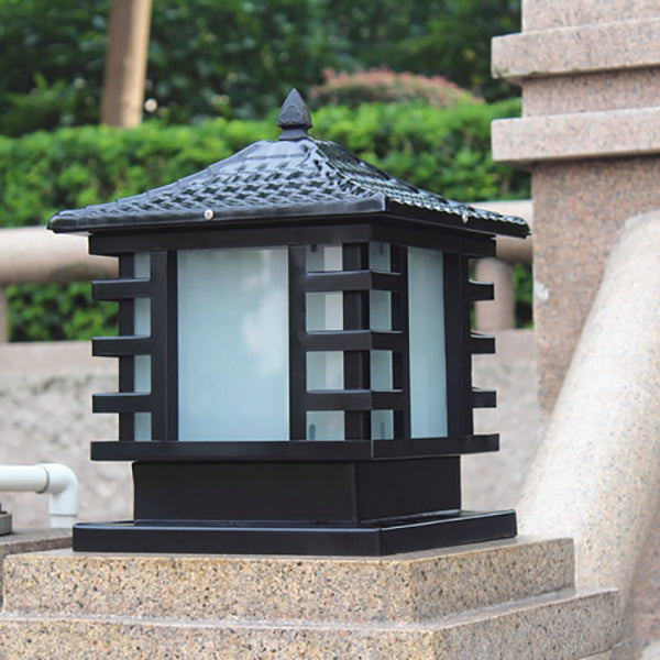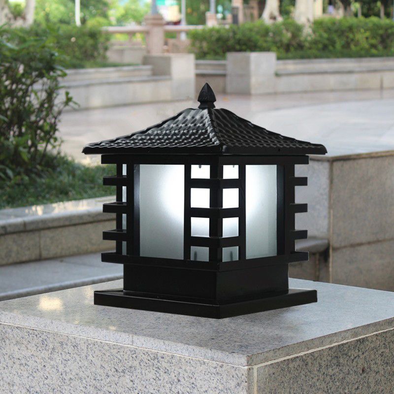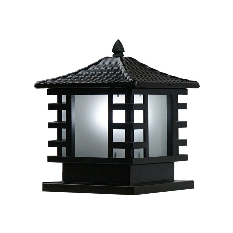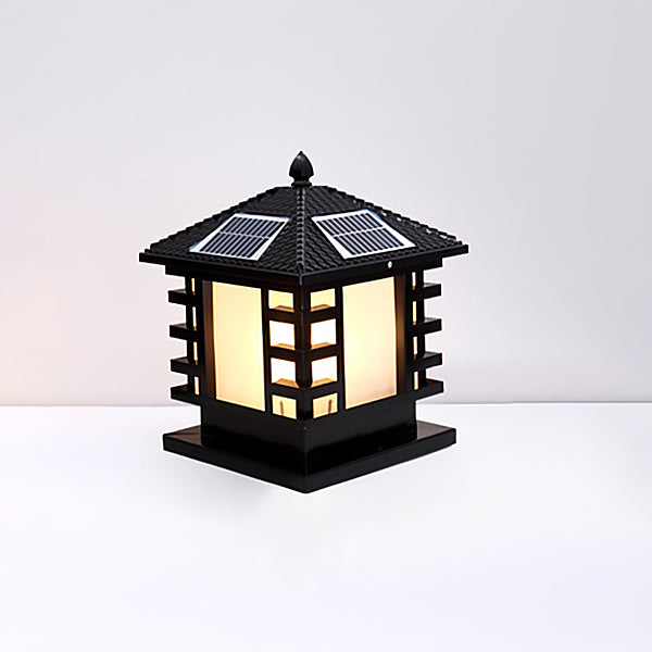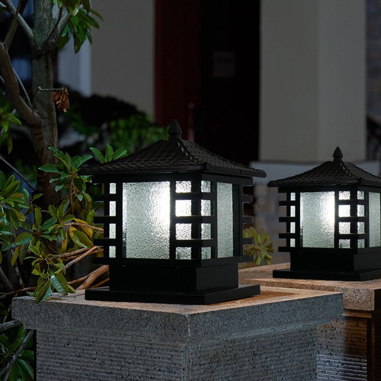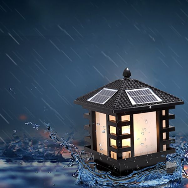 Square Waterproof Pillar Lamp Black Solar Outdoor Lights for Garden