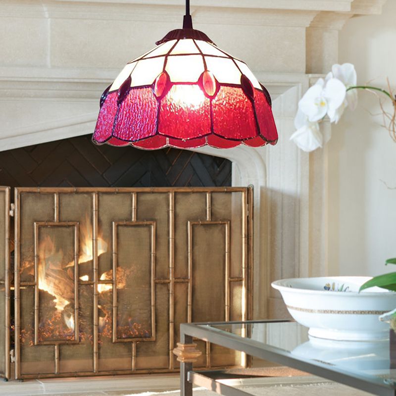 Stained Glass Beaded Drop Lamp Tiffany-Style 1 Head Pink/Green Pendant Lighting Fixture for Hall