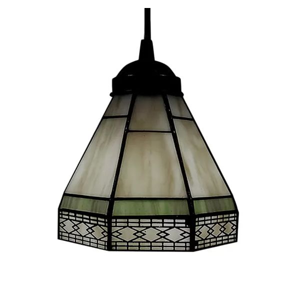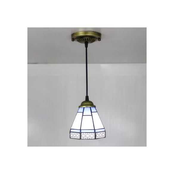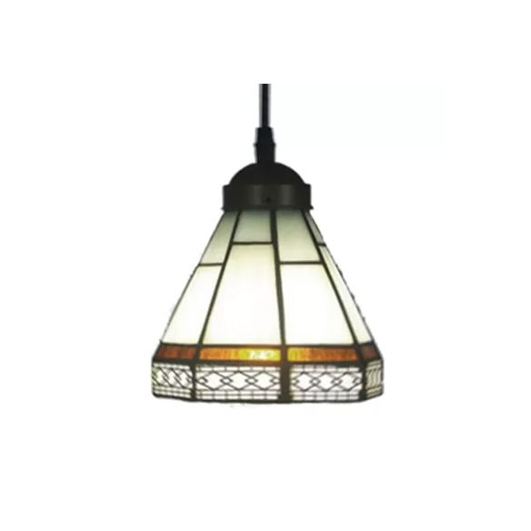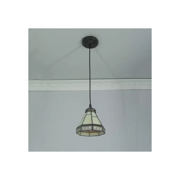 Stained Glass Conical Drop Lamp Tiffany-Style 1 Head Beige/Green/Blue Pendant Lighting Fixture for Living Room