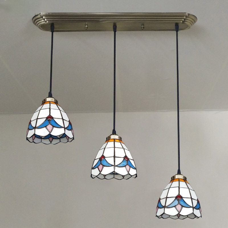 Stained Glass Shaded Hanging Light Traditional 3 Heads Bronze Multi Light Pendant