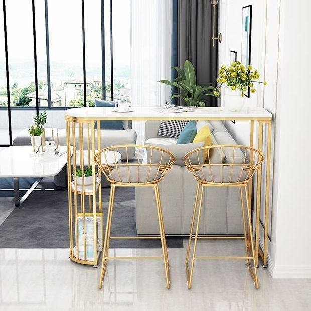 Stone Bar Dining Table Industrial Bar Dining Table with Sled Base in Gold