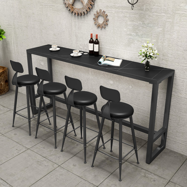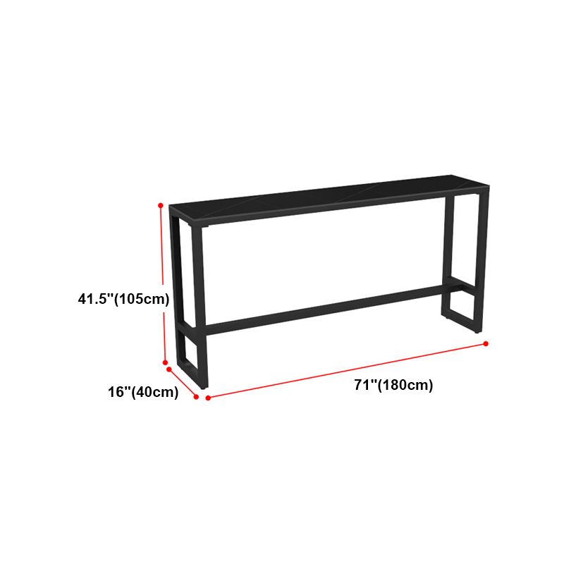 Stone Bar Table Industrial Bar Dining Table with Trestle Base in Black