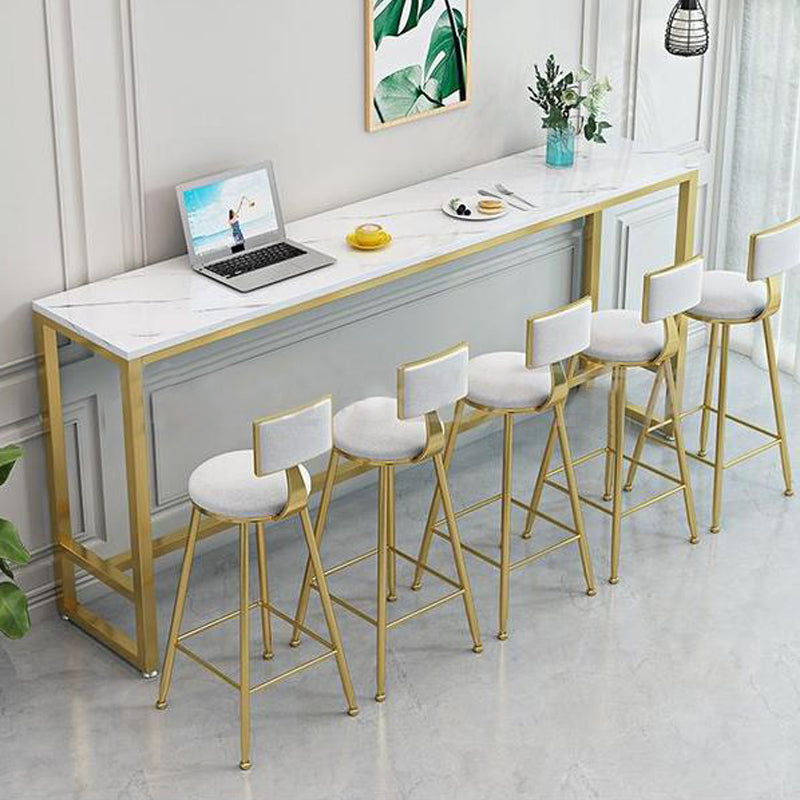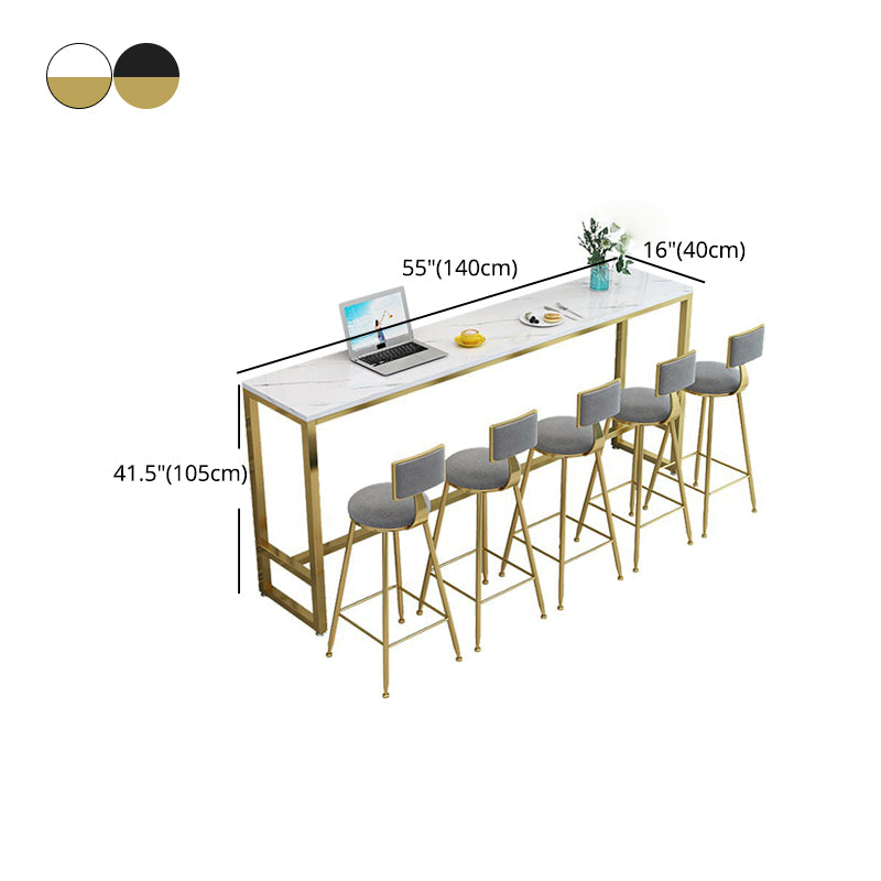 Stone Bar Table Traditional Luxury Rectangle Bar Table with Trestle Base in Gold