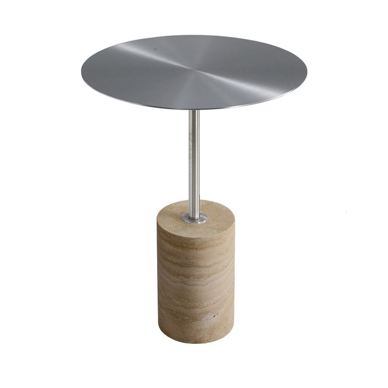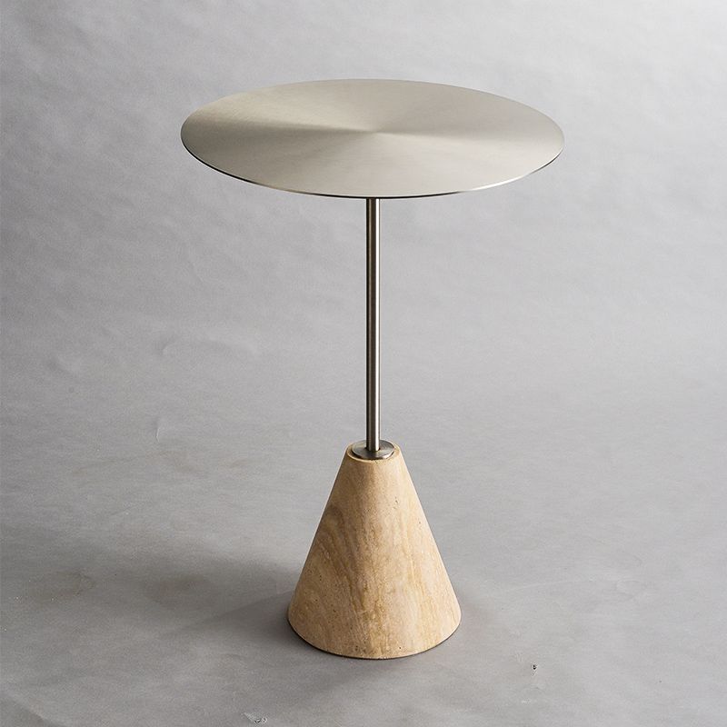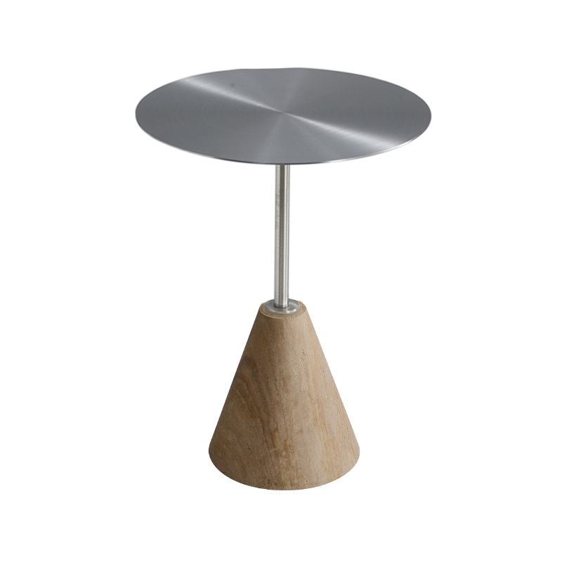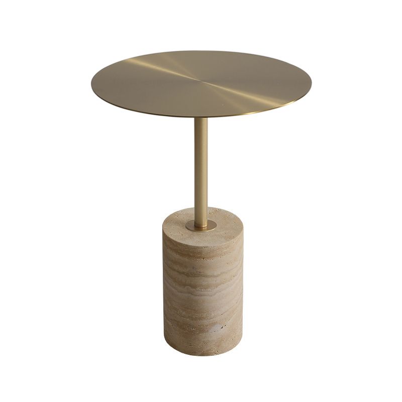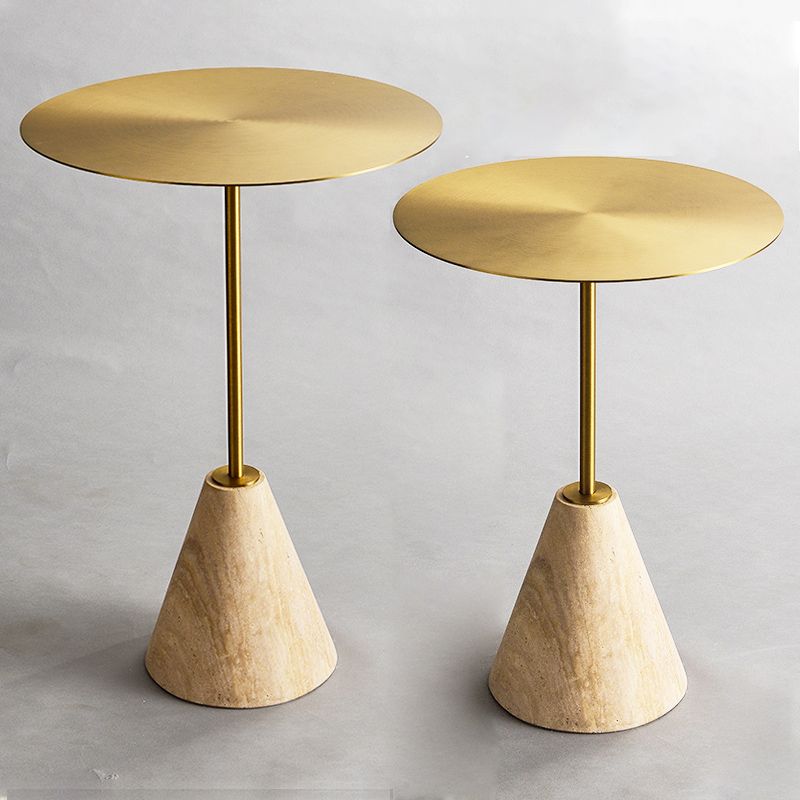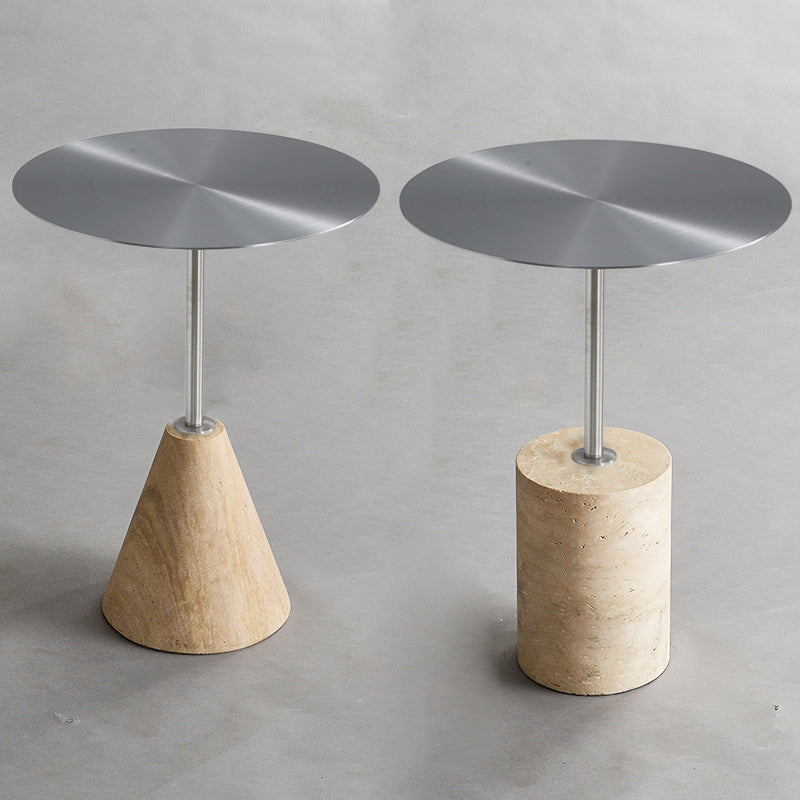 Stone Pedestal End Table Metal Round Side End Table for Living Room