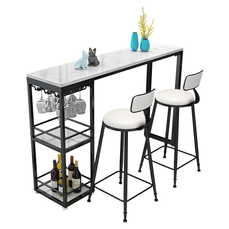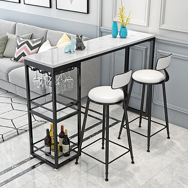 Stone Rectangle Bar Table White Contemporary Bar Table with Sled Base
