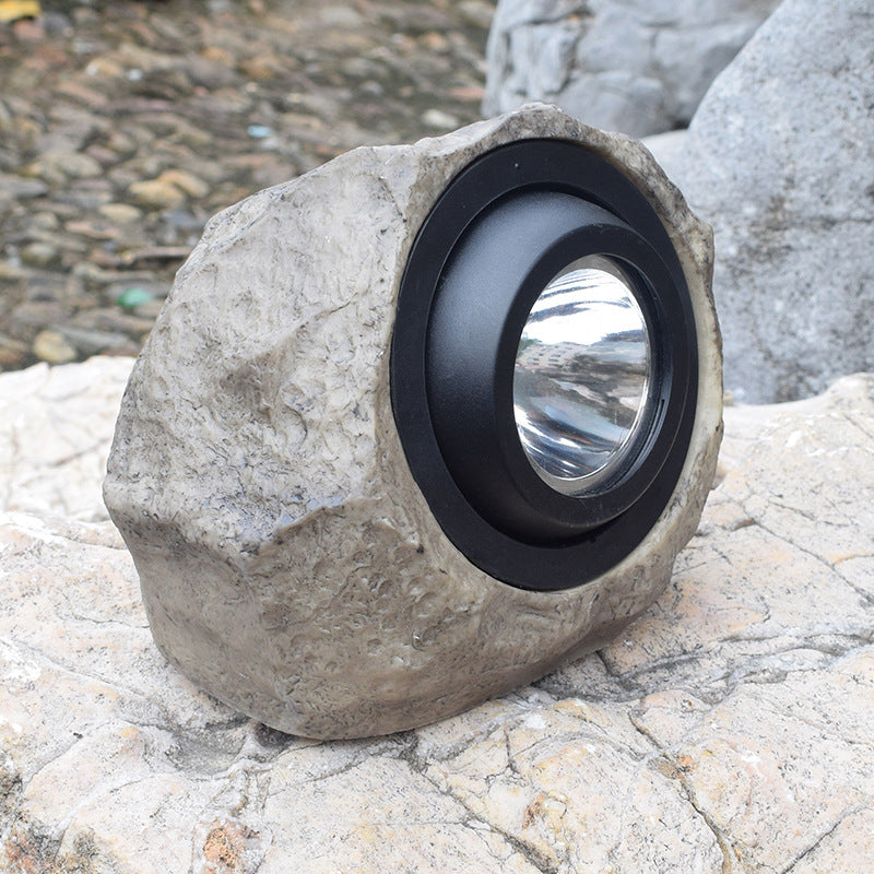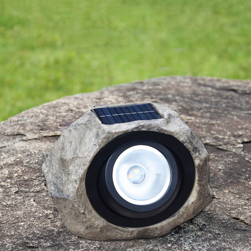 Stone Resin LED Lawn Spotlight Decorative Brown Solar Powered Ground Lighting for Garden