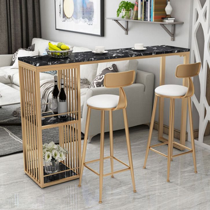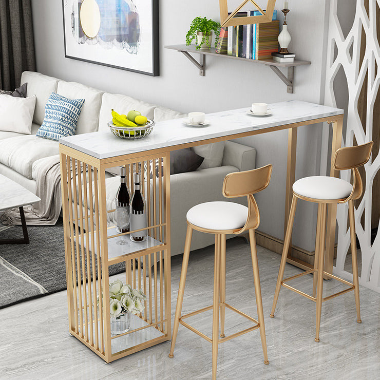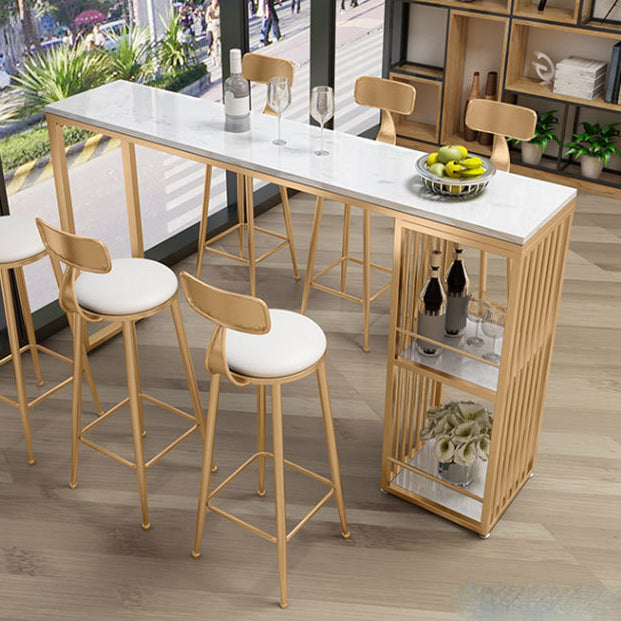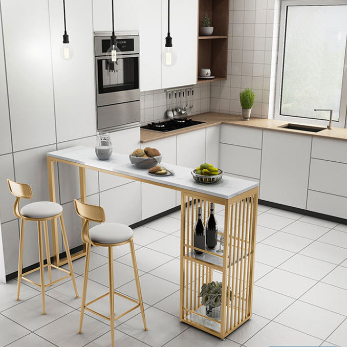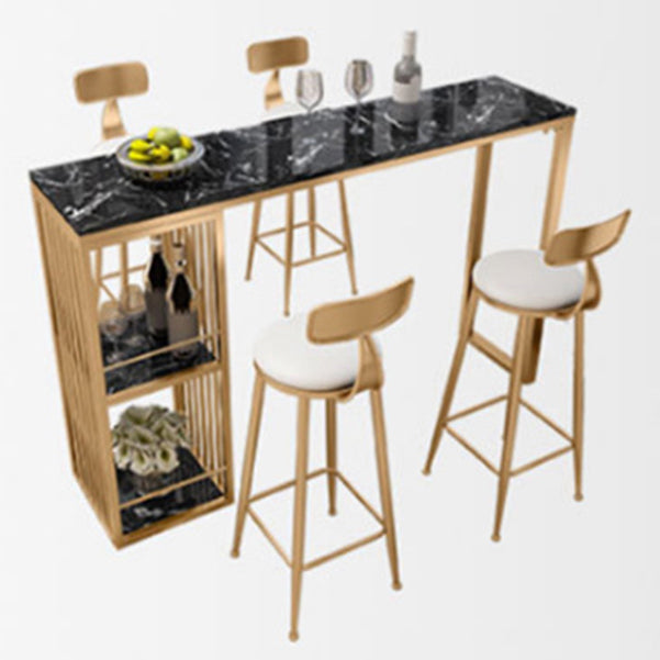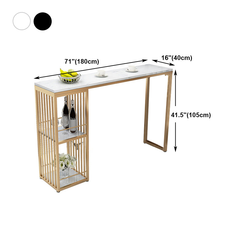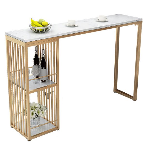Stone Top Bar Dining Table Traditional Luxury Rectangle Bar Table with Gold Sled Base