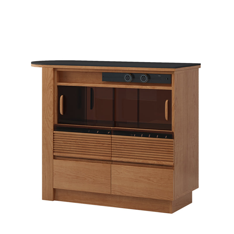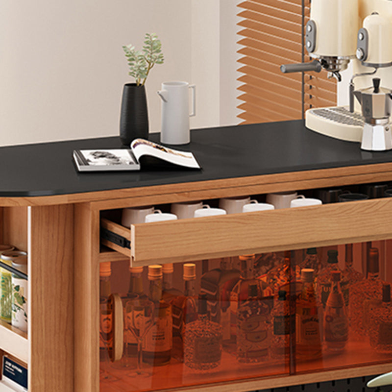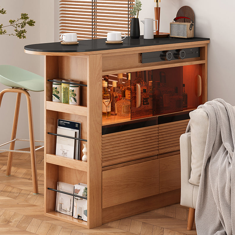 Stone Top Free Form Bar Table with Brown Pine Wood Base for Living Room